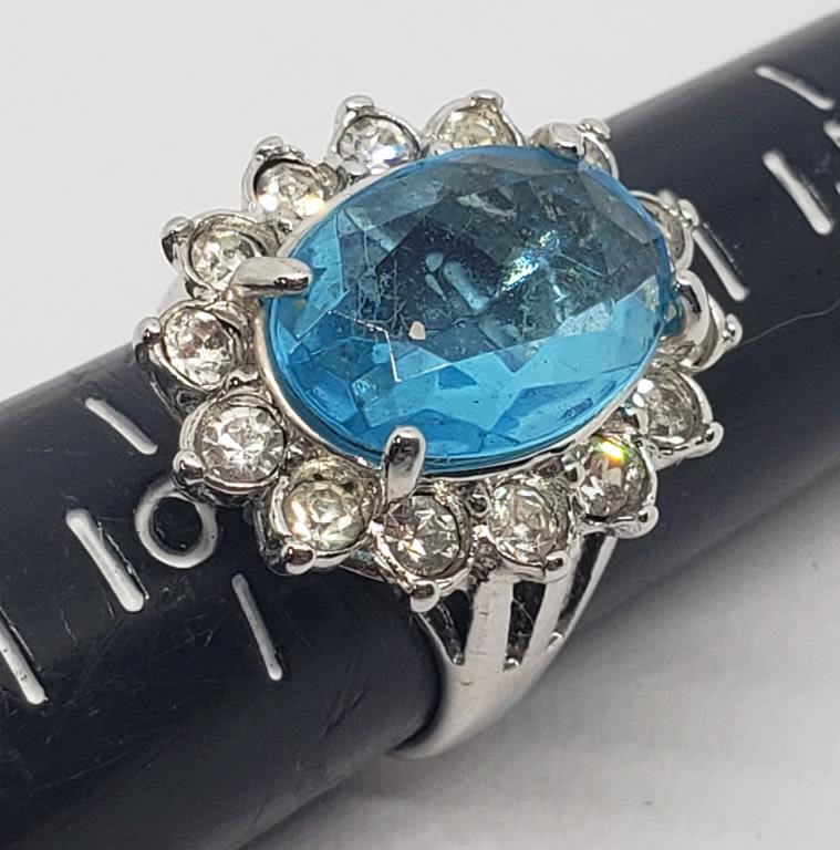 BABYE BLUE CENTER STONES WITH CLEAR STONE BORDER