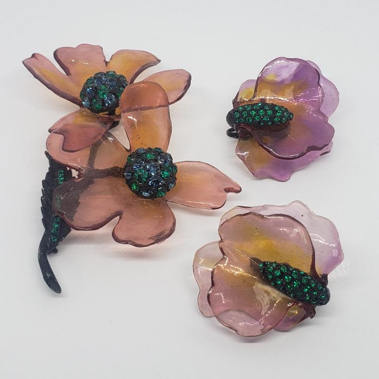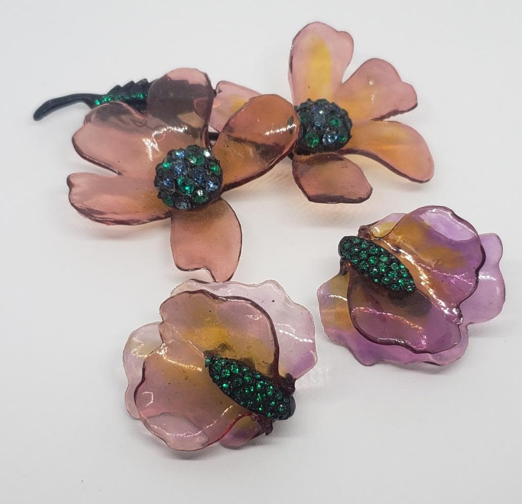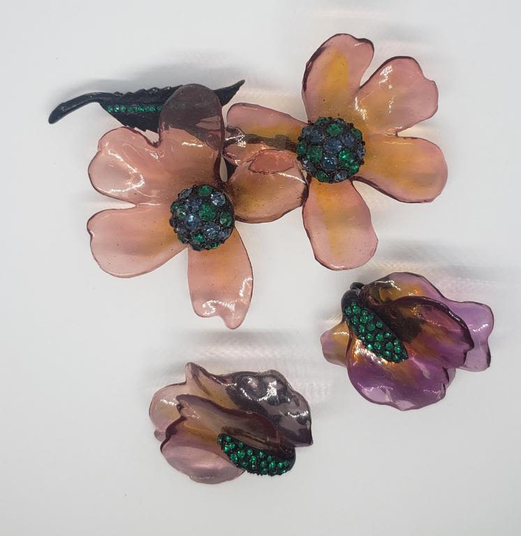 WITH EMRALD GREEN RHINESTONE CENTER WITH MATCHING PAIR OF CLIP ON EARRINGS