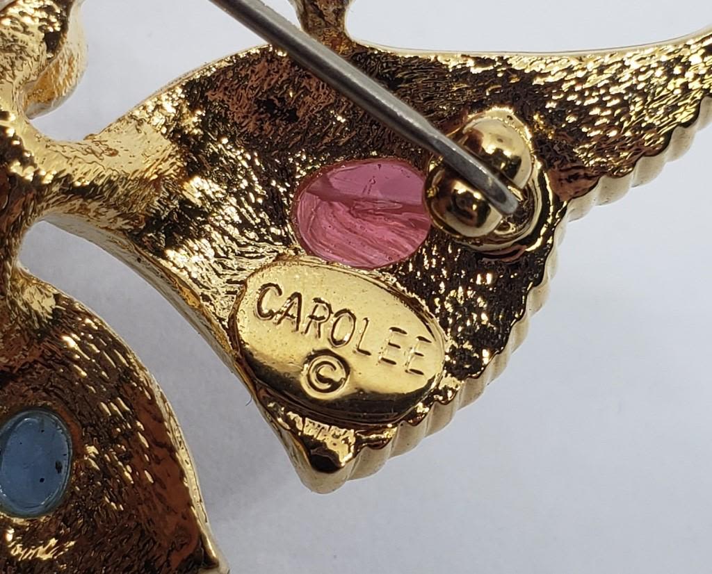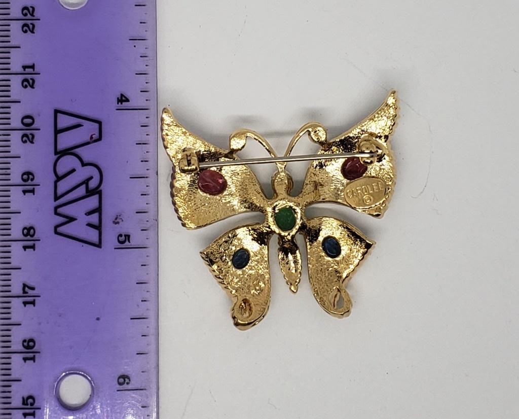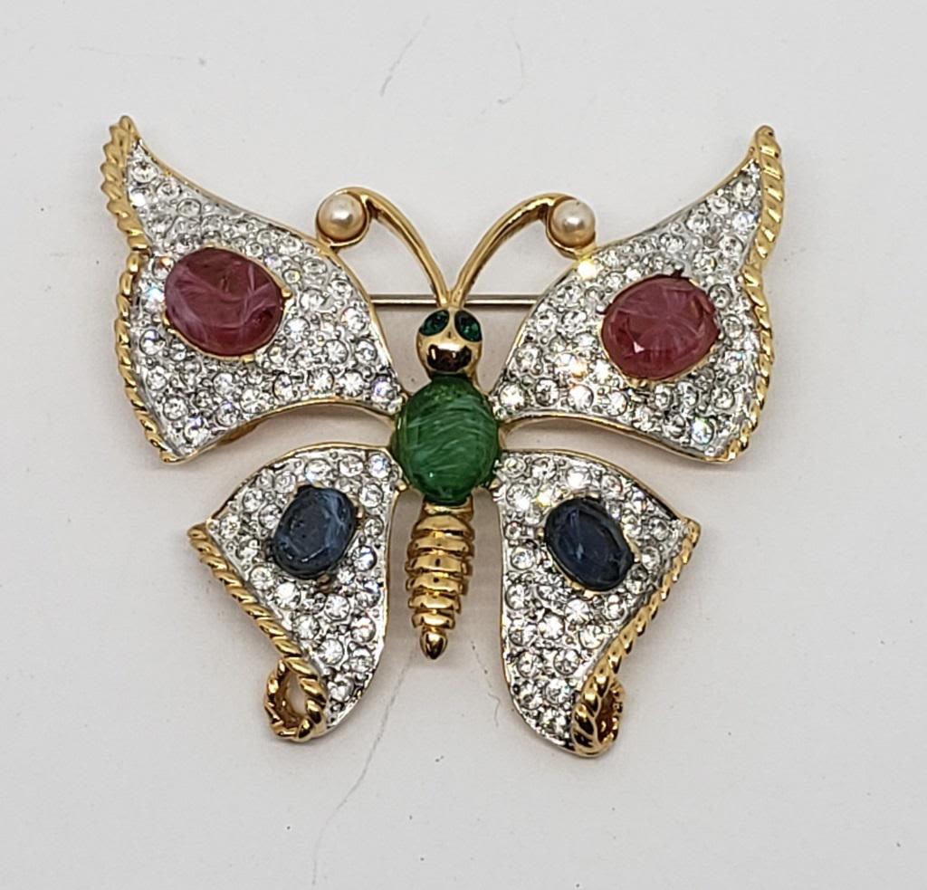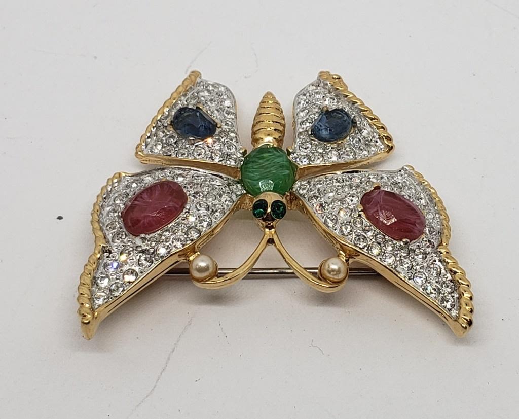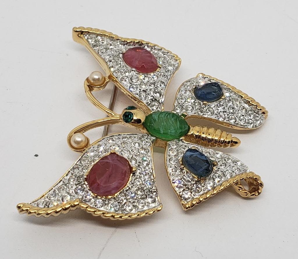 BROOCH WITH RHINESTONES-RED-BLUE-GREEN LUCITE