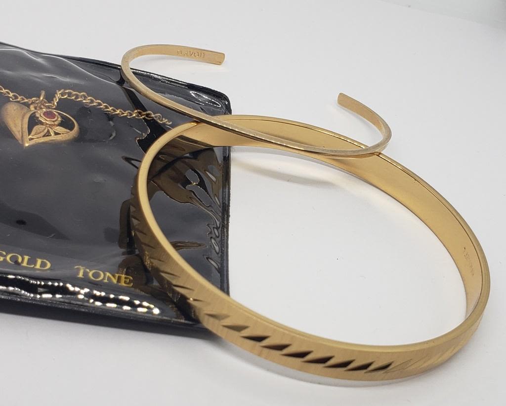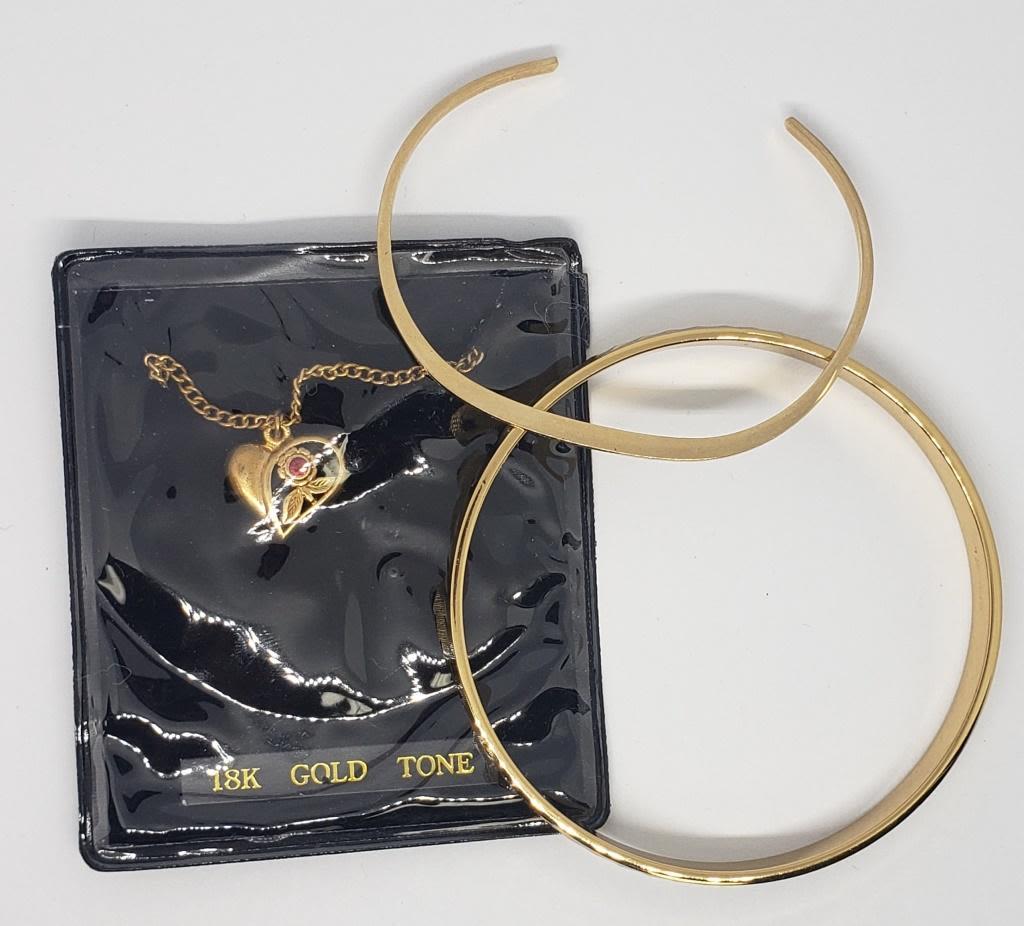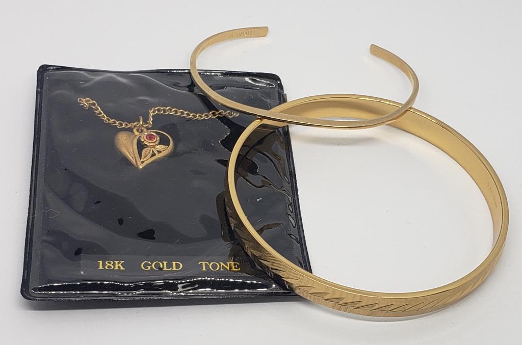 BANGLE (1)AVON CUFF (1)18K GOLD TONED NECKLACE WITH HEART PENDANT RED RHINESTONE