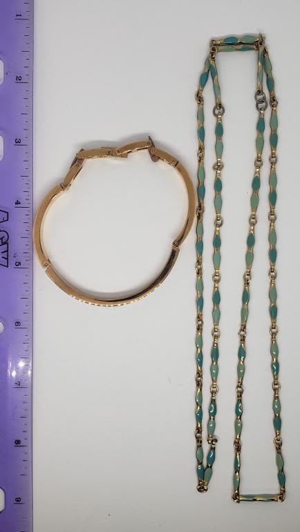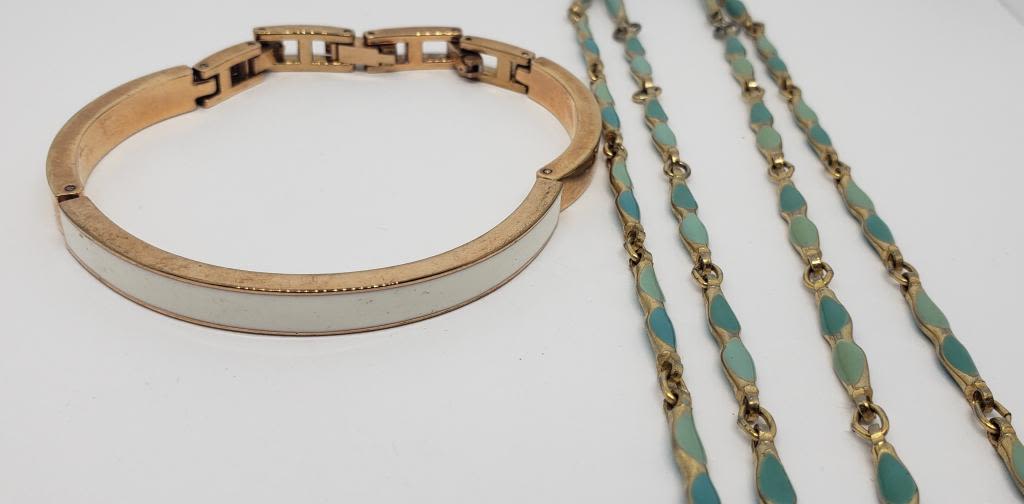 AND (1)GOLD TONED BRACELET WITH WHITE ENAMEL TOP