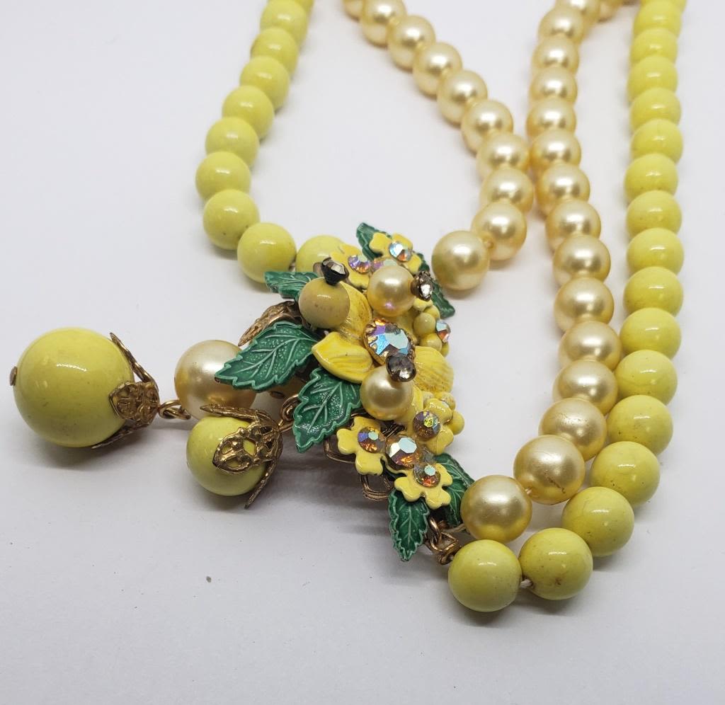 FLOWER CLUSTER CENTER-RHINESTONES AND BEADED DANGLY CHARMS-BEAUTIFUL VINTAGE PIECE!!