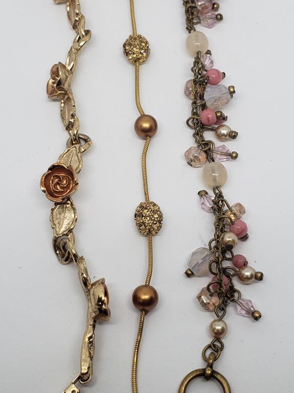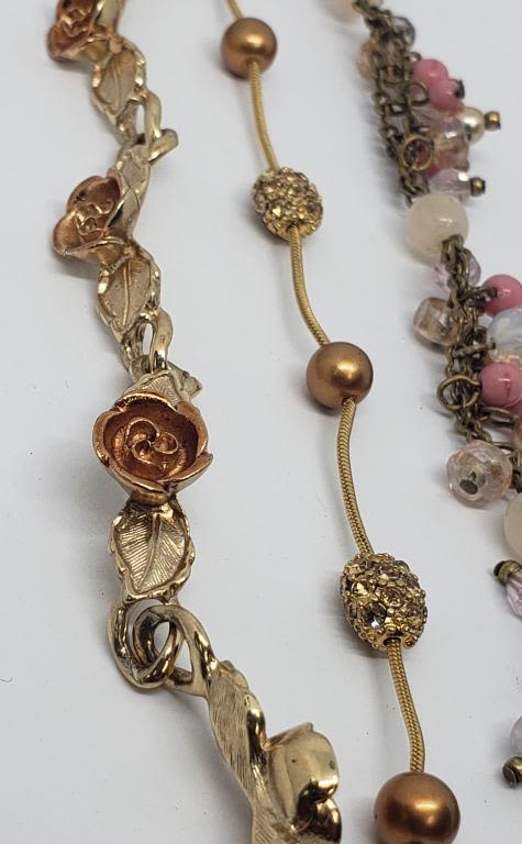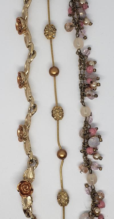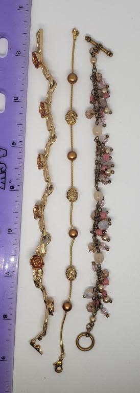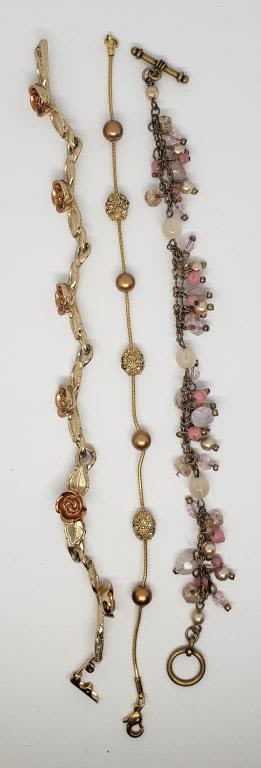WITH ROSE GOLD TONED ROSES (1)WITH DANGLY BEADED CHARMS (1)WITH GOLD TONED AND BROWN BEADED ACCENTS