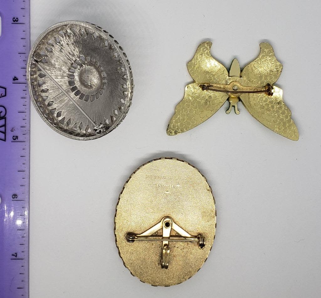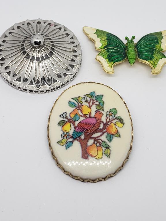 A PEAR TREE (1)MADE IN GERMNAY GOLD TONED BUTTERFLY ENAMEL (1)KRAMER SILVER TONED