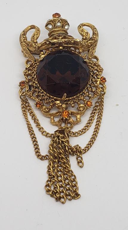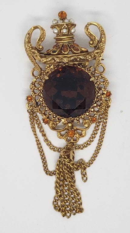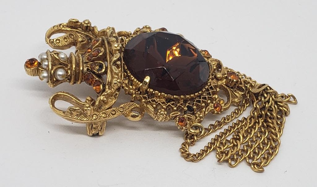 ORANGE RHINESTONES-FAUX PEARLS-TASSLES (1)RHINESTONE MISSING