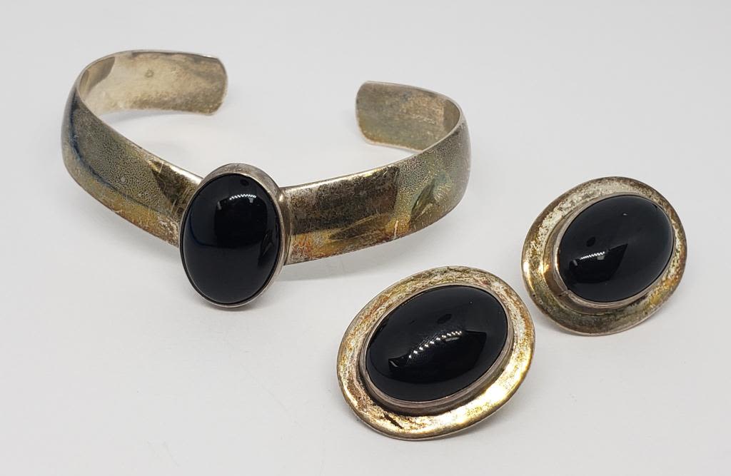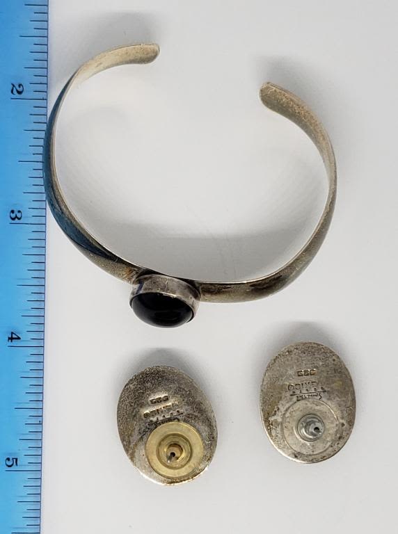 925 Sterling Silver CUFF BRACELET & BUTTON PIERCED EARRINGS (23.8 DWT)