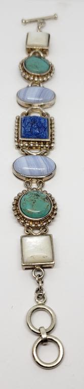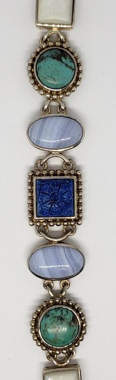 POSSIBLE MOTHER OF PEARL, TURQUOISE, CARVED BLUE LAPIS AND LAVENDER STONES-GORGEOUS PIECE!! TOTAL 34.6 DWT