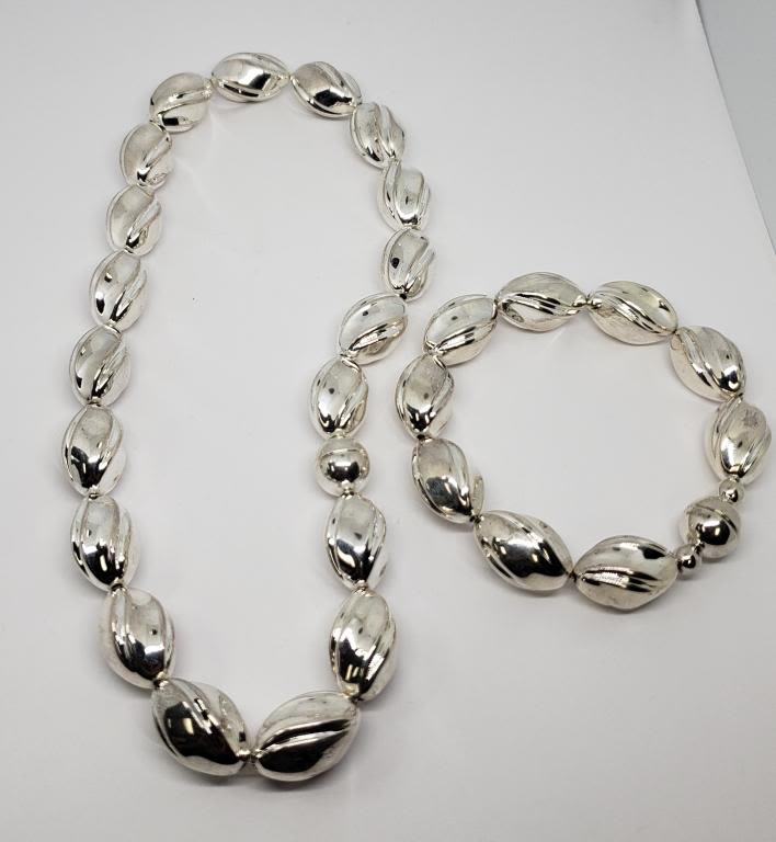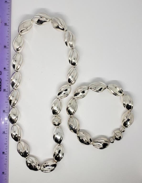 WITH MAGNETIC CLOSURES-NECKLACE MEASURES 16 INCHES AND BRACELET MEASURES 8 INCHES-TOTAL 47.5 DWT