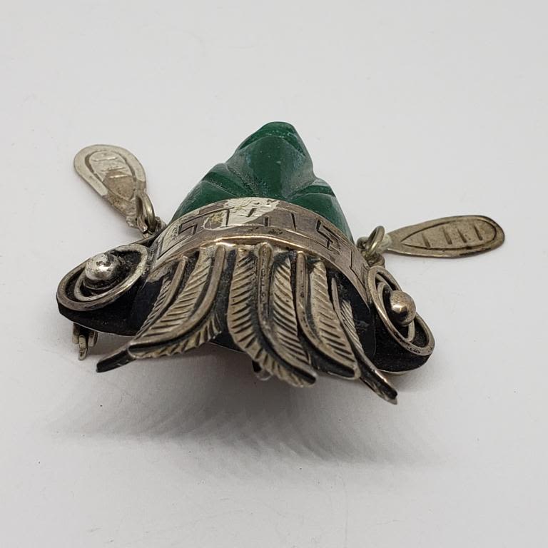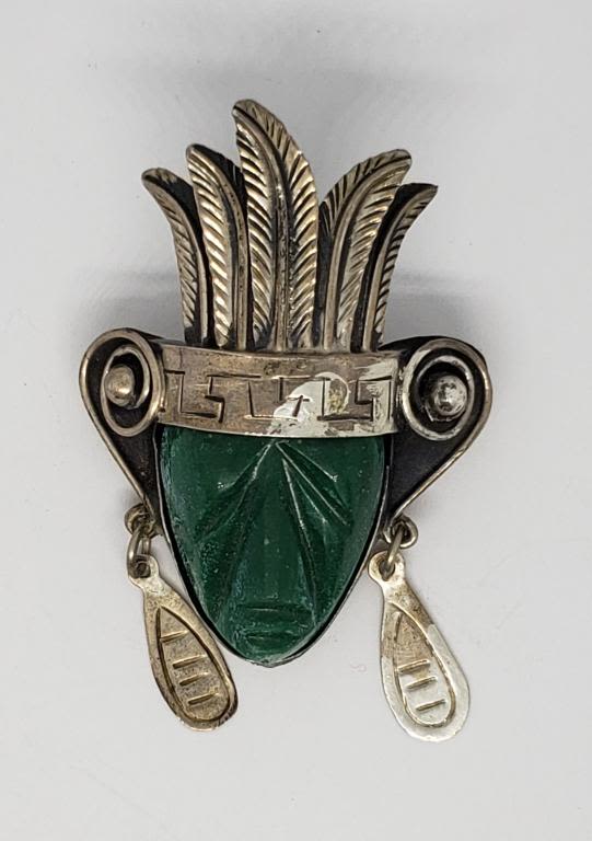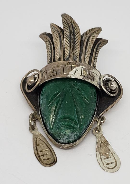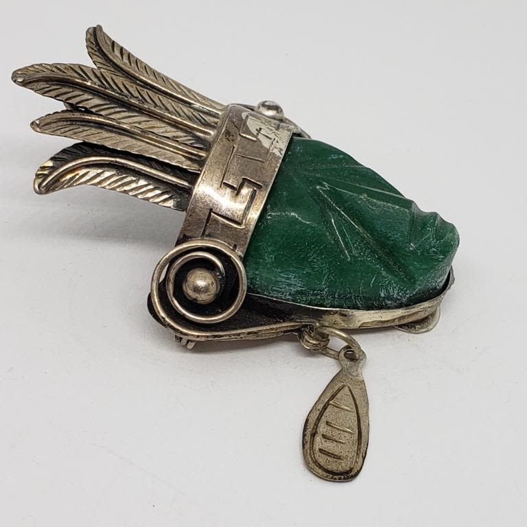 WITH LARGE CARVED JADITE FACE (2)DANGLY CHARMS-TOTAL 16 DWT