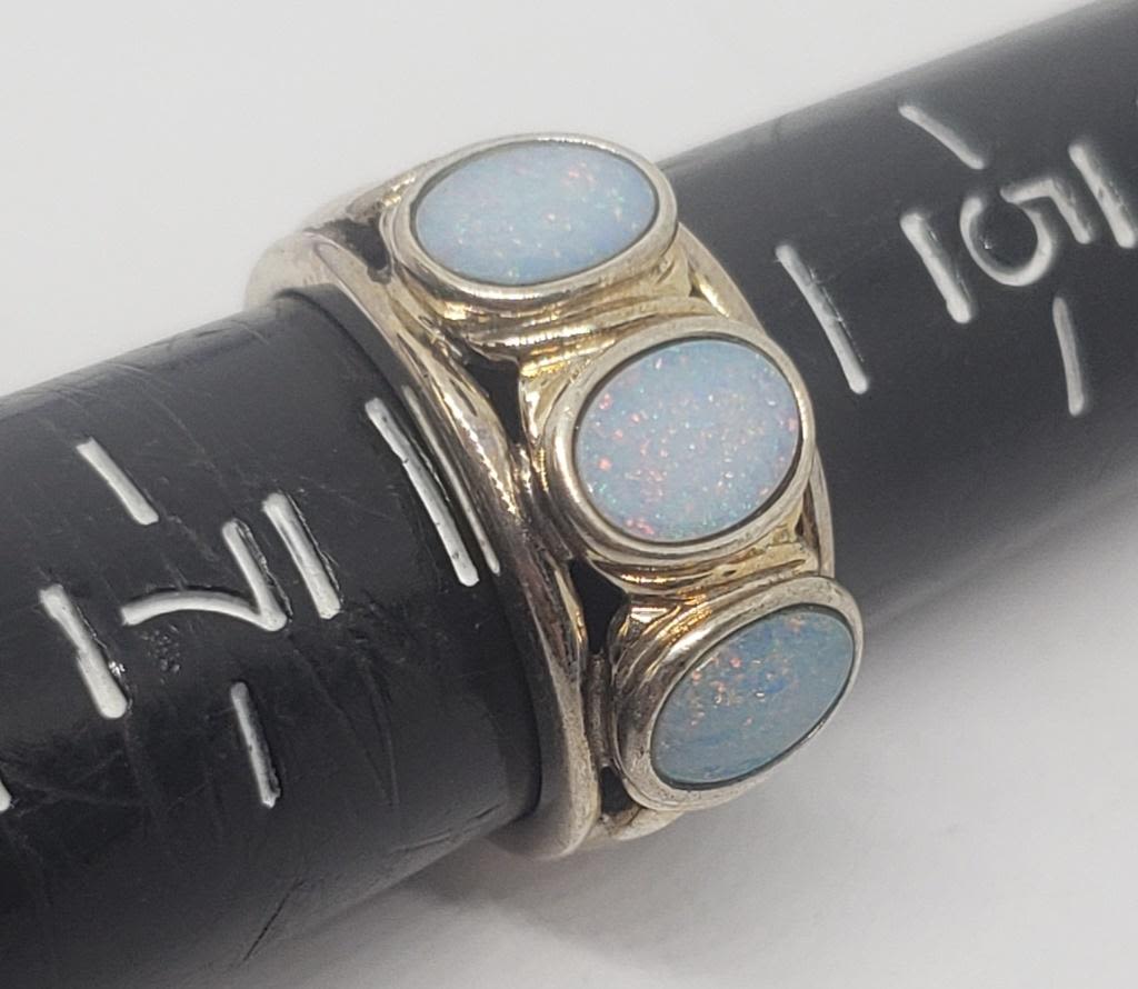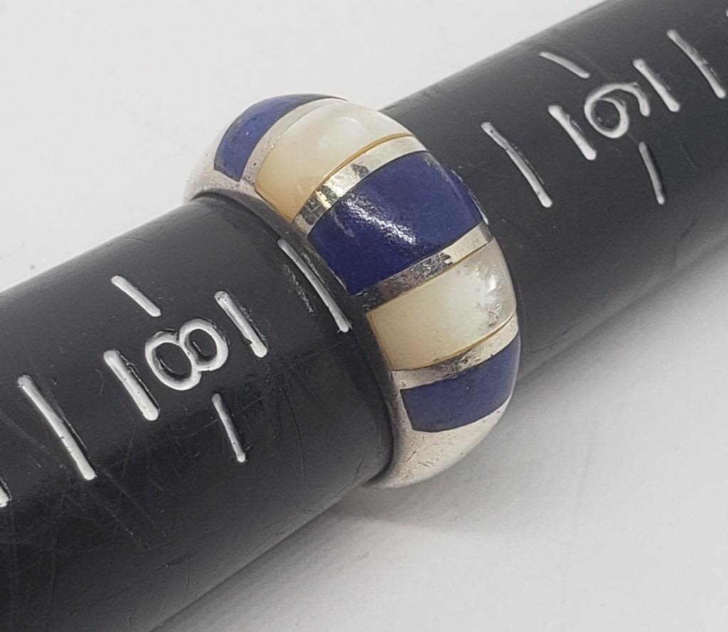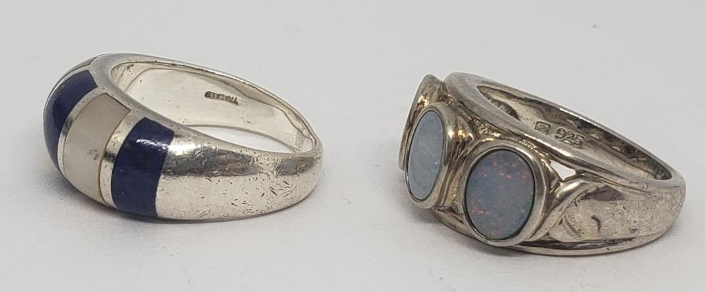 (1)WITH OPAL? STONE (1)WITH LAPIS AND MOTHER OF PEARL INLAY DESIGN-RING SIZES 6.5-7-TOTAL 8.4 DWT
