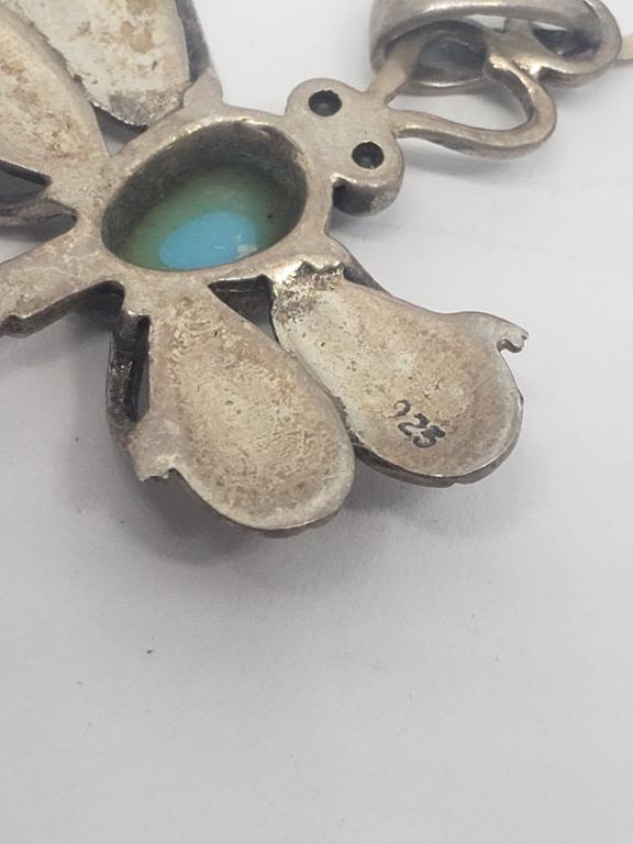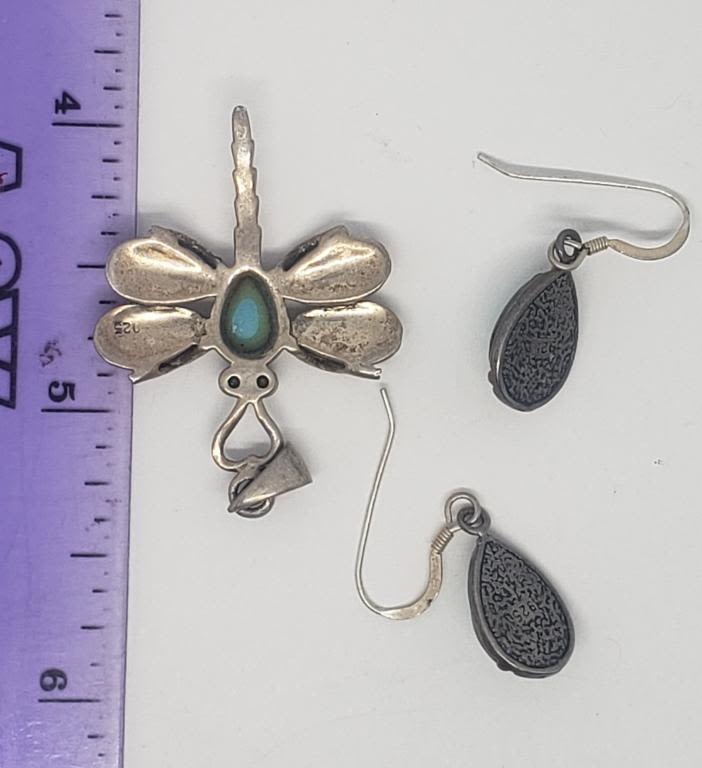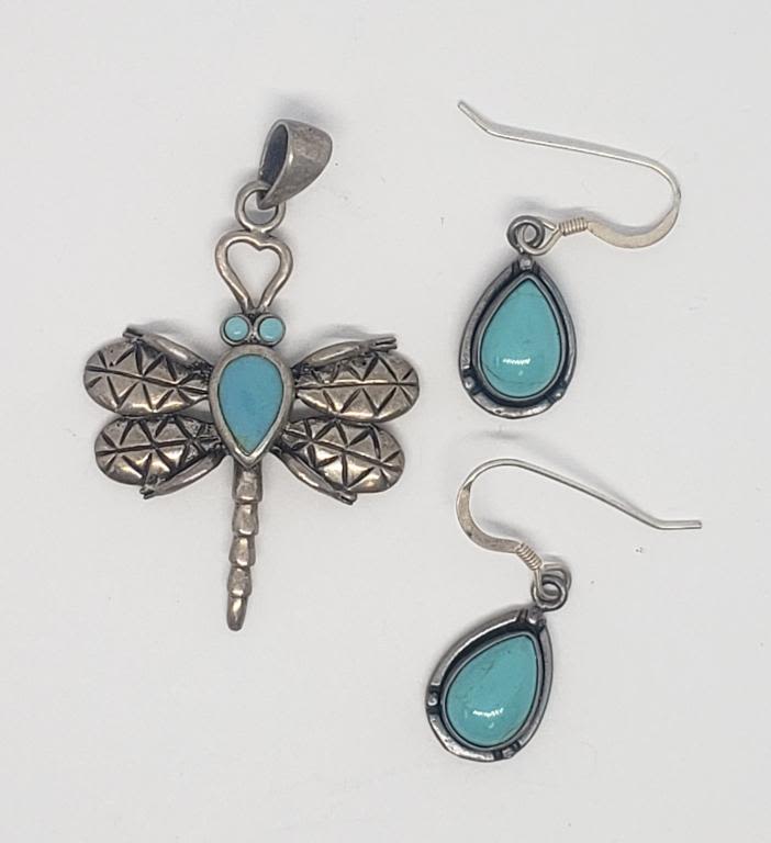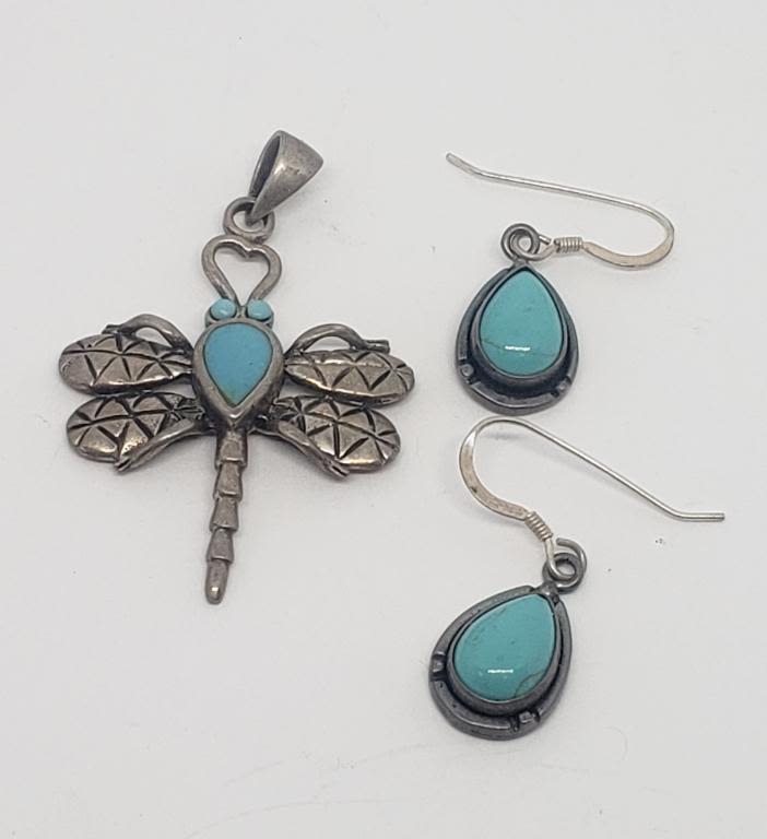 INLAY DESIGN PLUS (1)PAIR OF PIERCED DANGLY EARRINGS WITH TURQUIOSE LUCITE CENTER-TOTAL 4.4 DWT