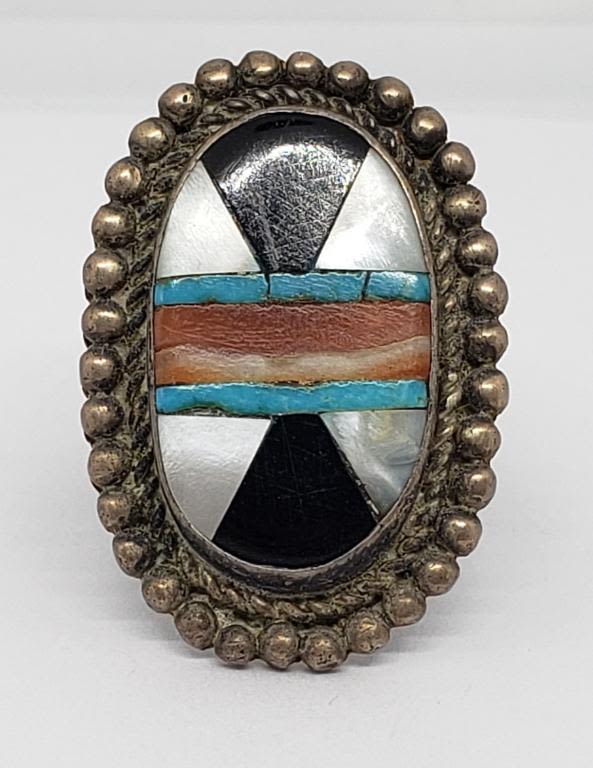 BLACK ONXY-RED CORAL-TURQUOISE INLAY DESIGN-TOTAL 6.3 DWT
