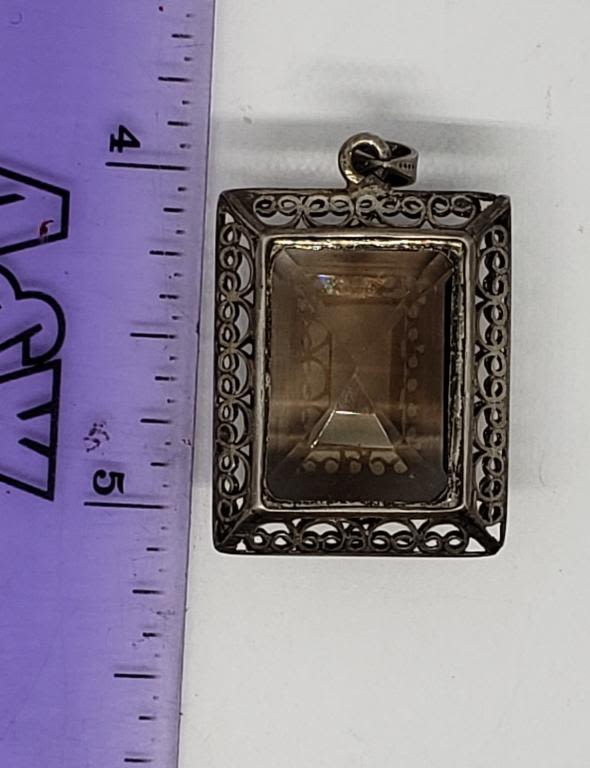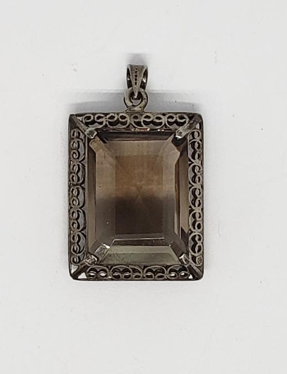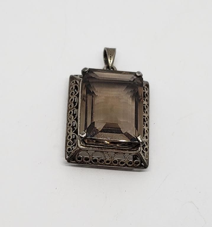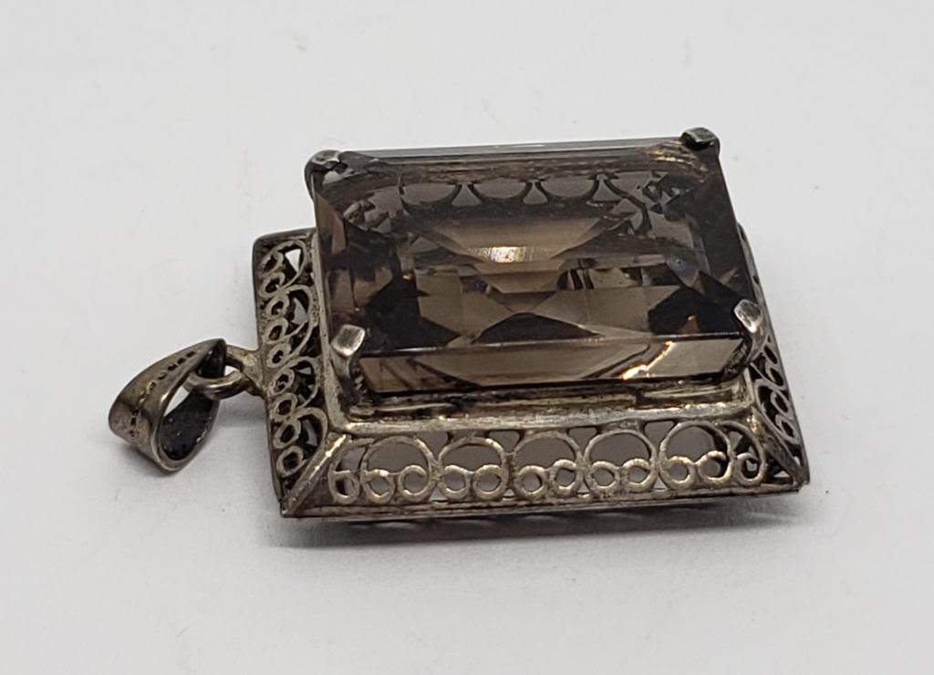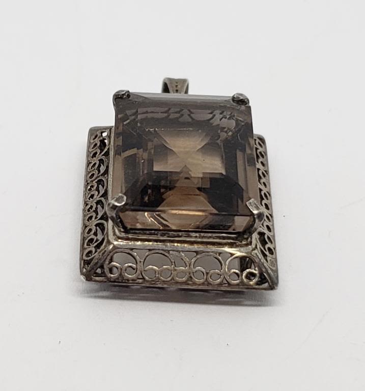 VINTAGE STERLING SQUARE PENDANT WITH BROWN