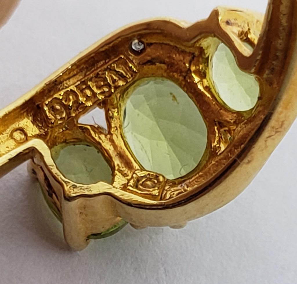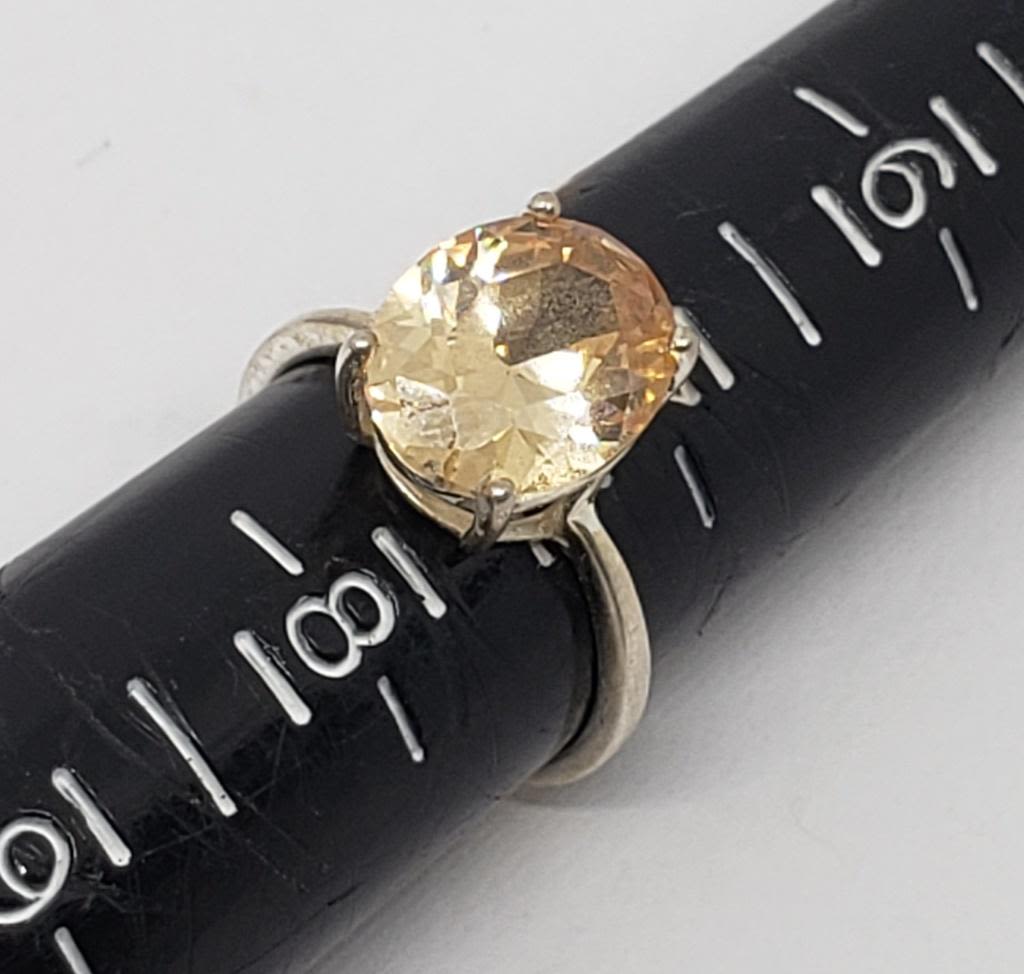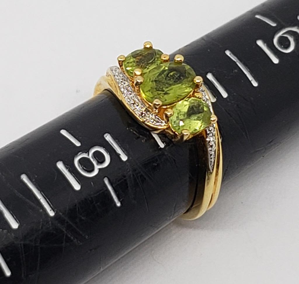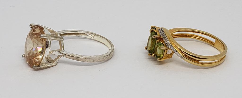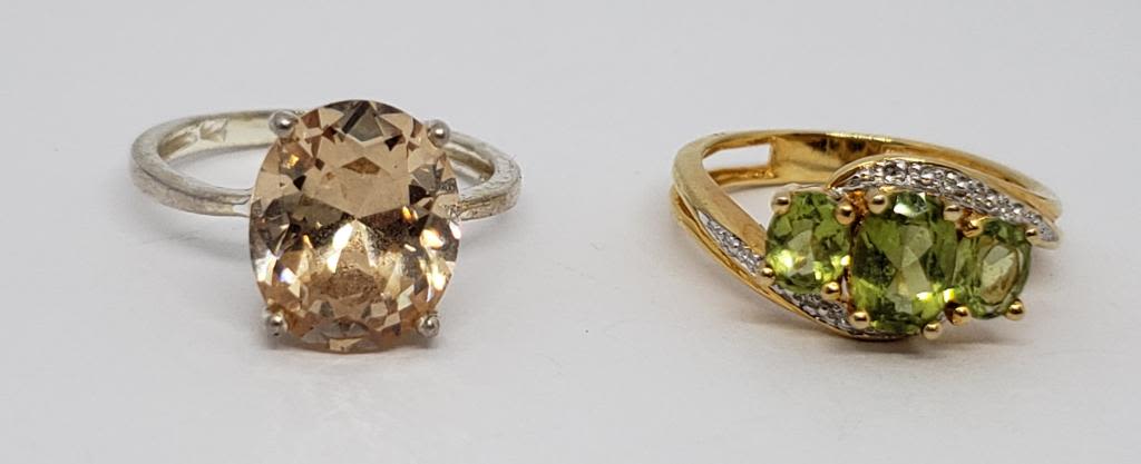 (1)GOLD TONED WITH PERIDOT AND CLEAR STONES & (1)LIGHT ORANGE STONE-RINGS SIZES 7.5-TOTAL 4 DWT