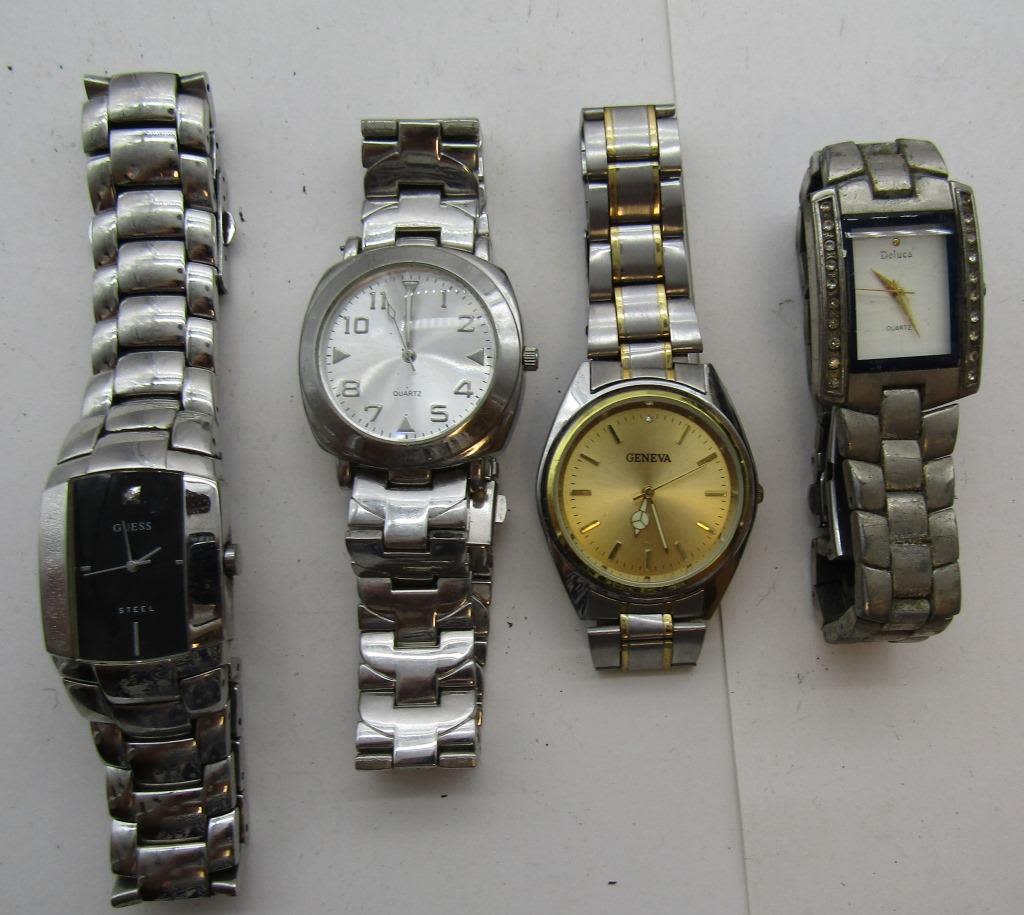 ALL UNTESTED: SOME MAY WORK, SOME MAY NOT, SOME MAY NEED BATTERIES, SOME FOR PARTS OR REPAIRS- 10 MENS QUARTZ WATCHES–GUESS-NO BOUNDARIES-(2)GENEVA-DELUCA-COACH SERIES-MISC