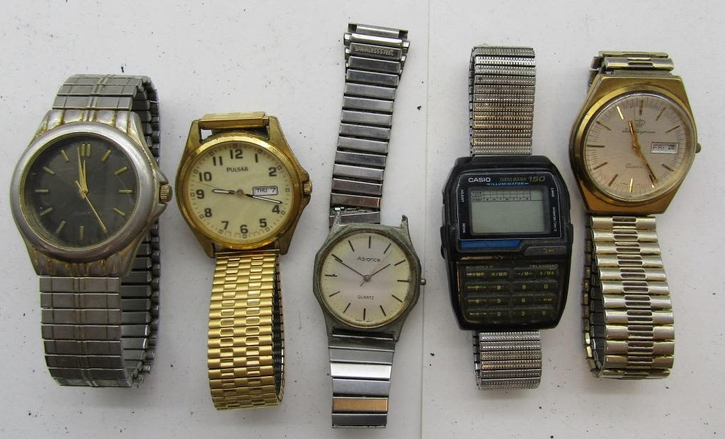 ALL UNTESTED: SOME MAY WORK, SOME MAY NOT, SOME MAY NEED BATTERIES, SOME FOR PARTS OR REPAIRS- 10 MENS QUARTZ WATCHES–MAJESTRON-DIAMANTE-(2)PULSAR-TIMEX -LTD-CASIO-ADVANCE-ENTERITY-JULES JURGENSEN-