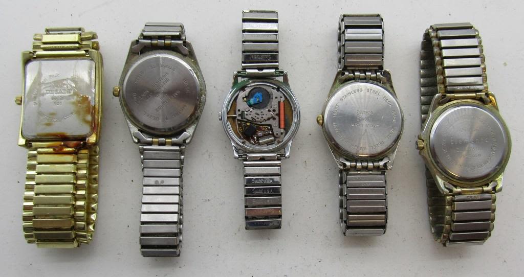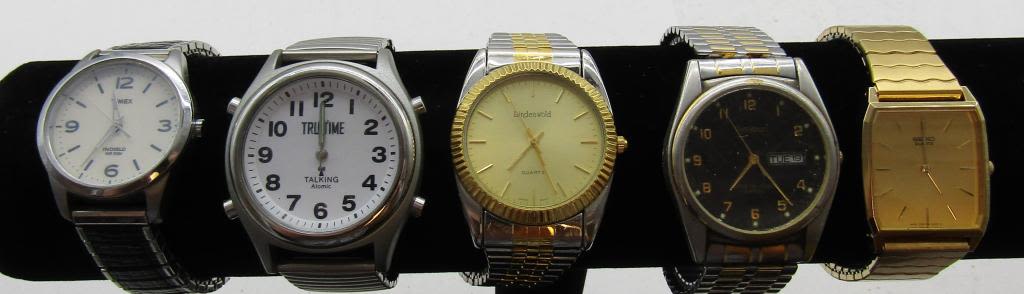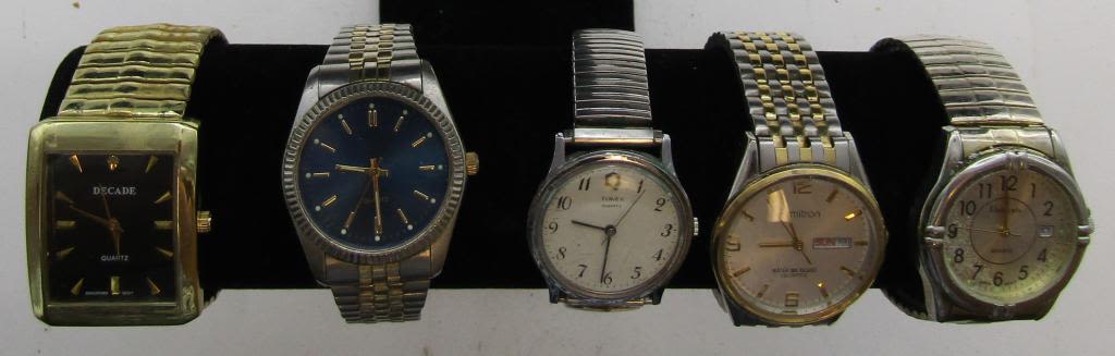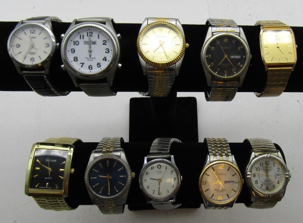 ALL UNTESTED: SOME MAY WORK, SOME MAY NOT, SOME MAY NEED BATTERIES, SOME FOR PARTS OR REPAIRS- 10 MENS QUARTZ WATCHES-STRETCH BAND WATCHES DECADE-LINDENWOLD-TRUTIME-(2)ARMITRON-TIMEX-E