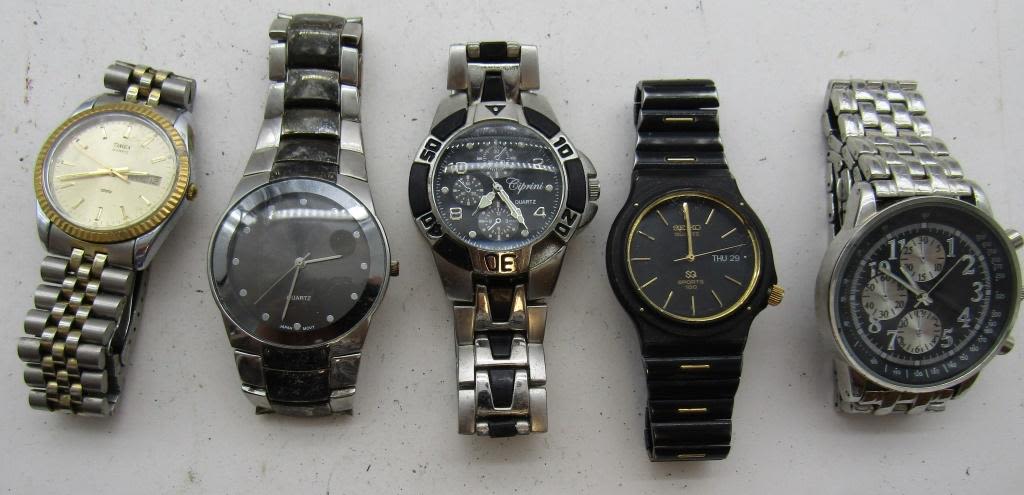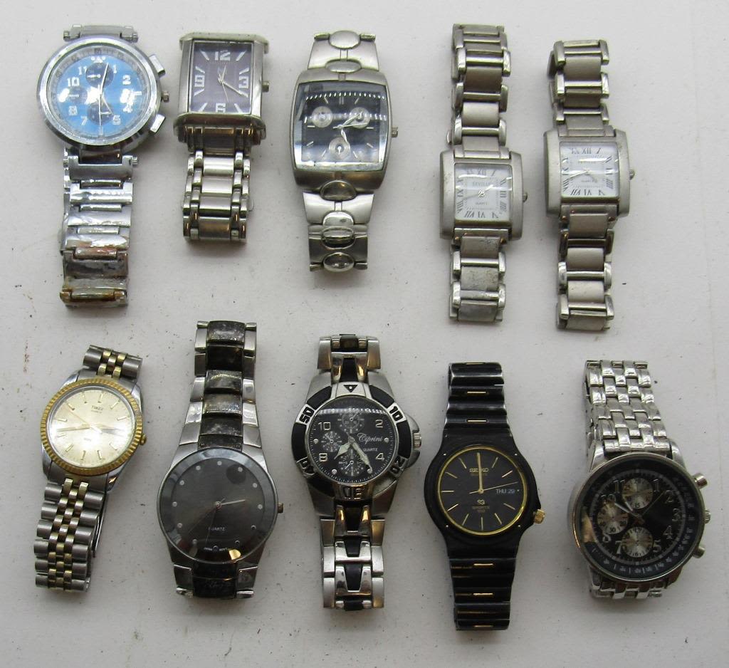 ALL UNTESTED: SOME MAY WORK, SOME MAY NOT, SOME MAY NEED BATTERIES, SOME FOR PARTS OR REPAIRS- 10 MENS QUARTZ WATCHES–TACHYMETRE-CIPPRINI-(2)SEVILLE-TIMEX -SEIKO-MISC