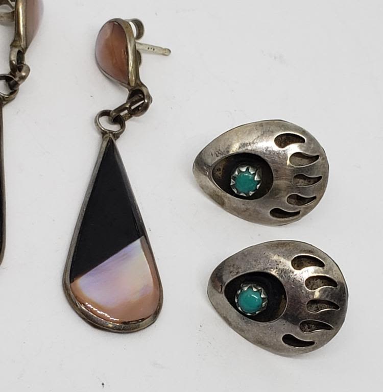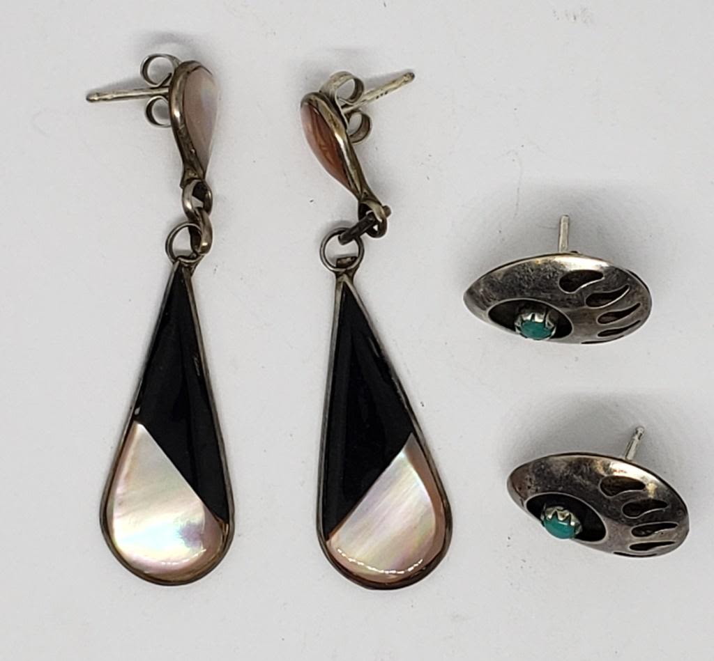 (1)BEAR CLAW WITH TURQUOISE BEAD (1)DANGLY WITH ABILONE AND BLACK ONYX INLAY DESIGN- TOTAL 4 DWT