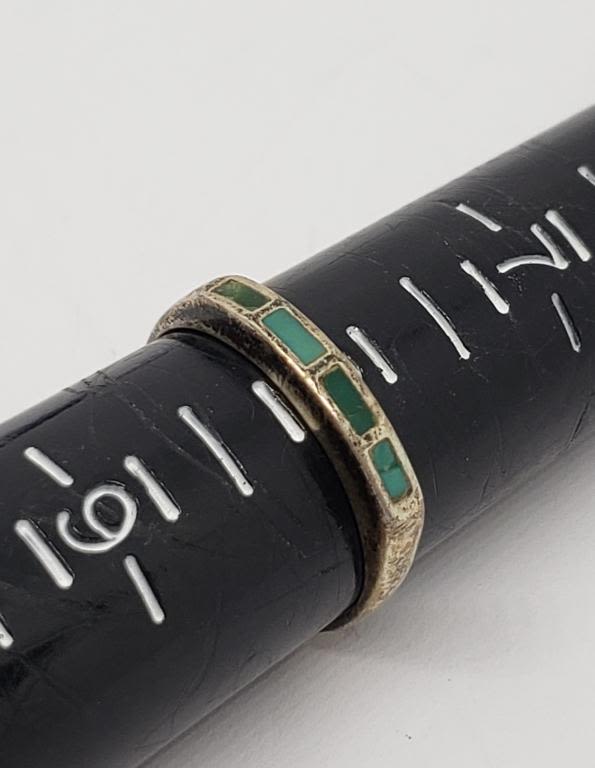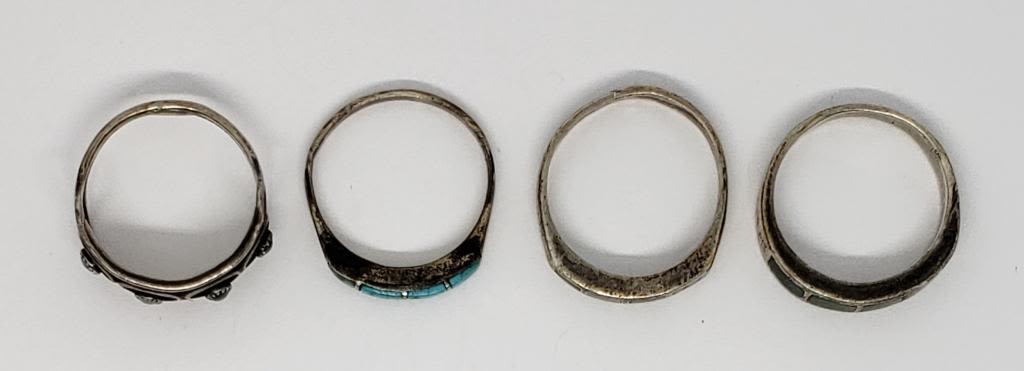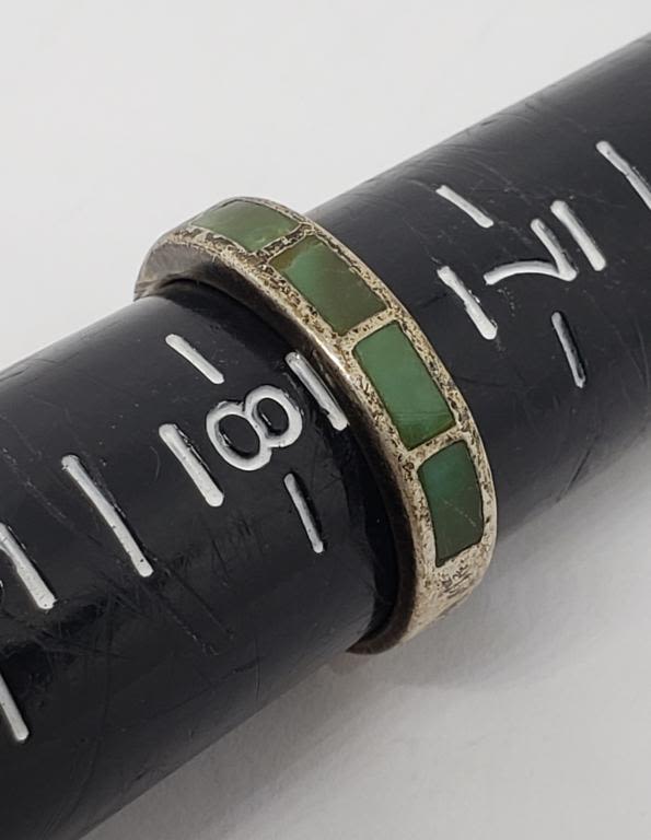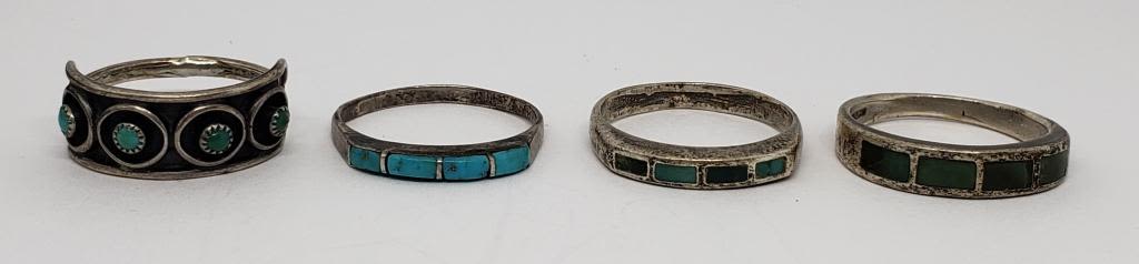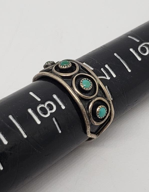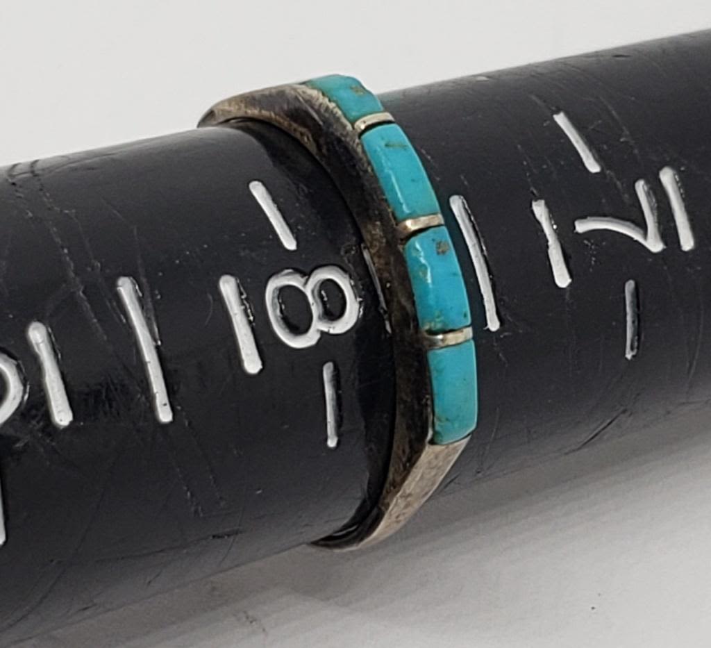 TURQUOISE INLAY DESIGN (1)WITH TURQUOISE BEADS-VARIOUS SIZES 7–TOTAL 5.9 DWT