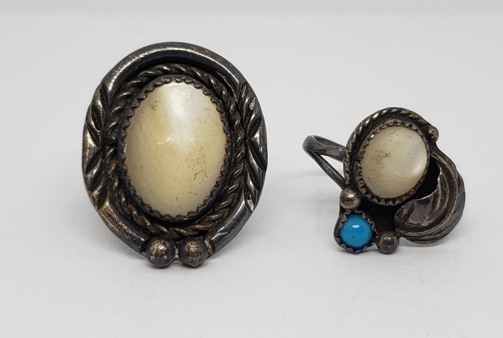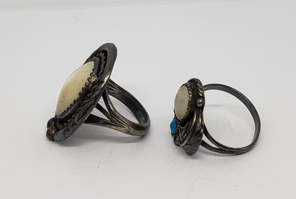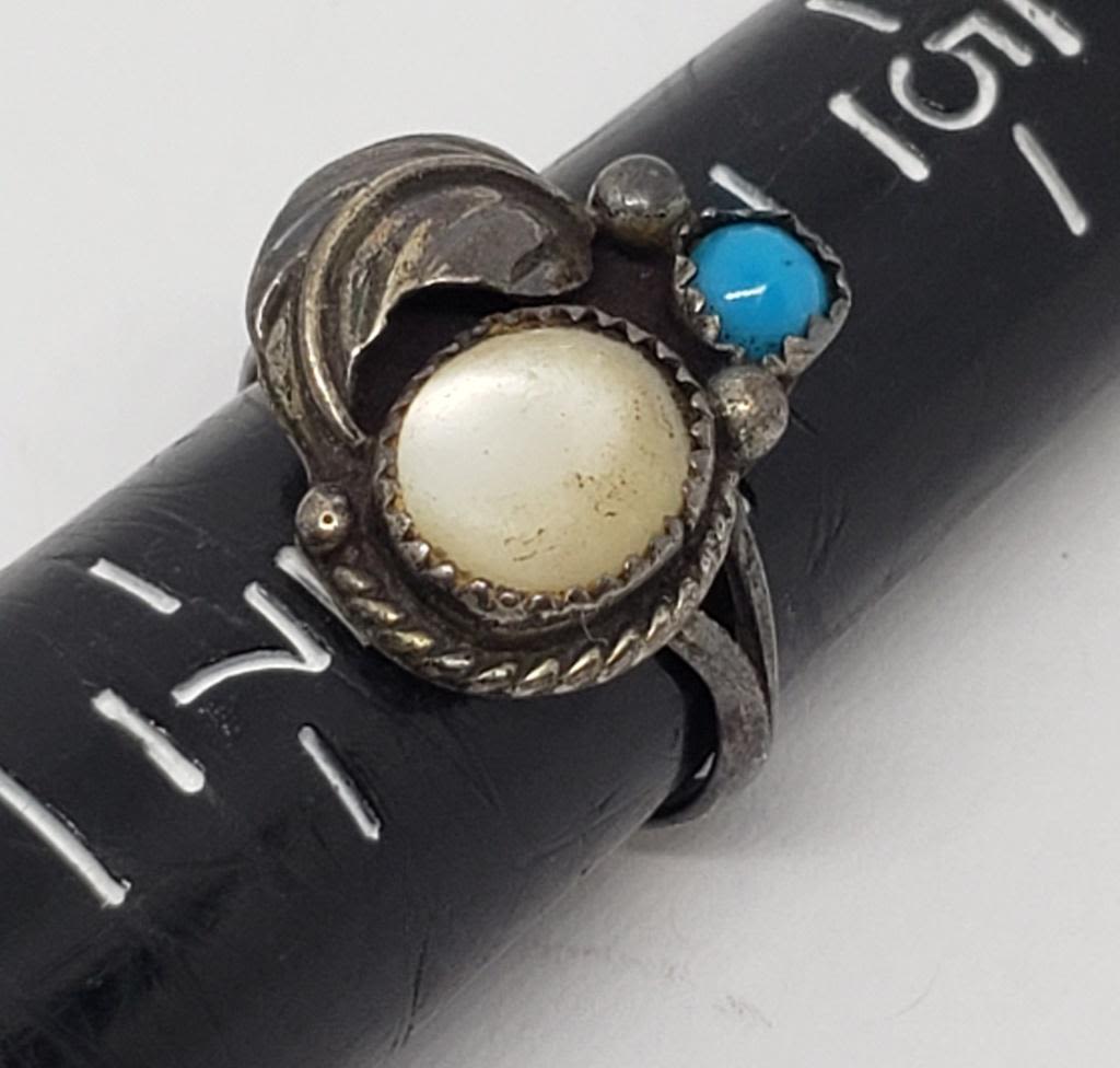 PEARL AND TURQUOISE STONES-RINGS SIZE 6-TOTAL 7.6 DWT