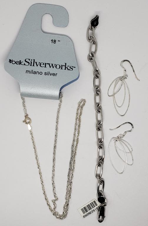 NECKLACE over LEAD FREE METALS 18" LONG / PENELOPE BRACELET 7" LONG / DANGLE EARRINGS ( 8.7 DWT)