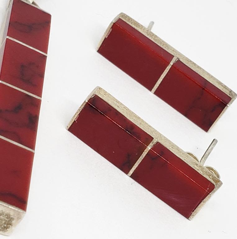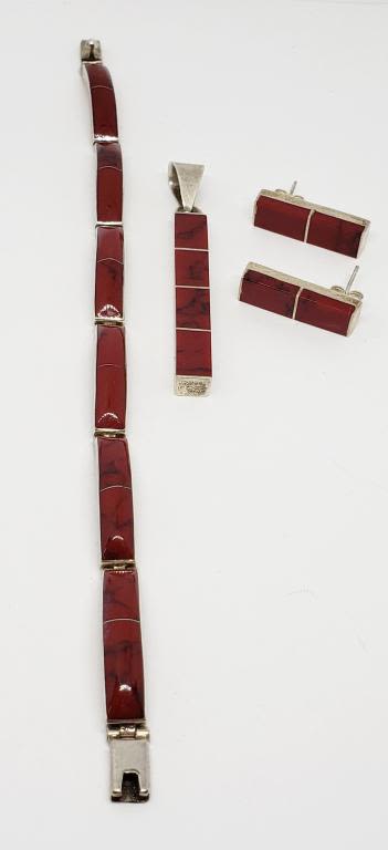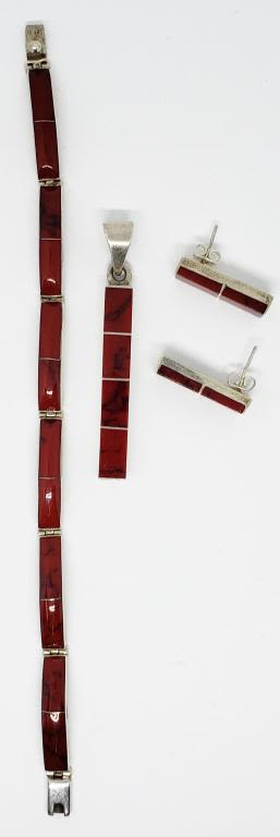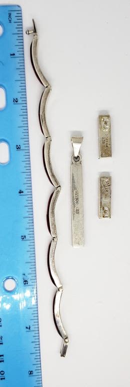 (1) 7 INCH PANEL BRACELET (1) 2 INCH LONG RECTANBLE PENDANT & (1)PAIR OF PIERCED RECTANGLE EARRINGS-TOTAL 21.3 DWT