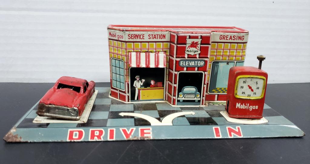 w/CAR (MOBIL GAS STATION) missing CAR LIFT, PUMP HANDLE & SIDE SIGN