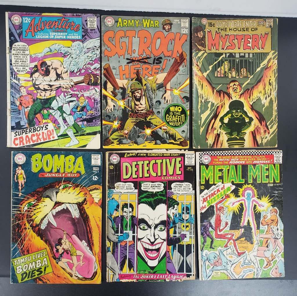 1968 ADVENTURE COMIC #372, 1969 SGT ROCK #201, 1970 THE HOUSE OF MYSTERY #188, 1966 METAL MEN #22, 1964 DETECTIVE #332, 1968 BOMBA THE JUNGLE BOY #5