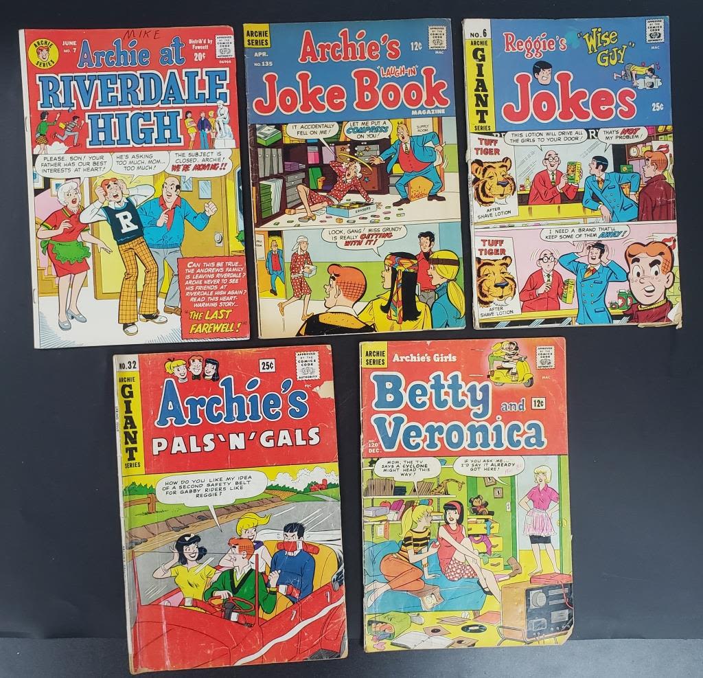 BETTY and ME, ARCHIE and ME, REGGIE and ME, ARCHIE’S JOKE BOOK, REGGIES JOKES, ARCHIE’S PALS N GALS, BETTY anD VERONICA, RIVERDALE HIGH