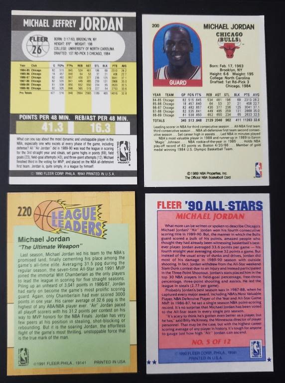 1990-91 FLEER #26 & #5 ALL STAR, 1991-92 FLEER #220, 1989-90 HOOPS #200