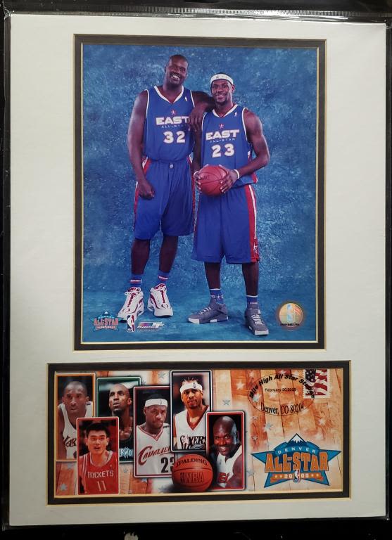MILE HIGH ALL STAR STATION FIRST DAY ISSUE STAMP by PHOTO FILE & 8X10 PHOTO LEBRON / SHAQ in MAT