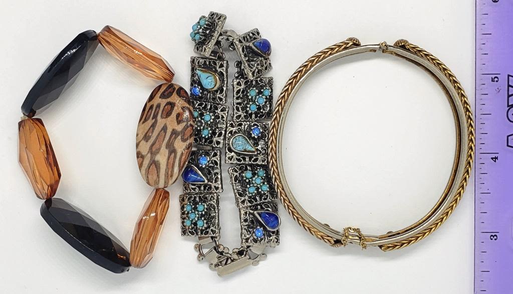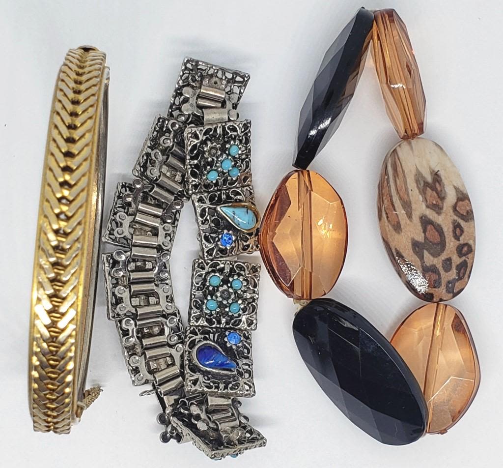 1 LARGE BEADED, 1 SILVER TONED WITH BLUE STONES