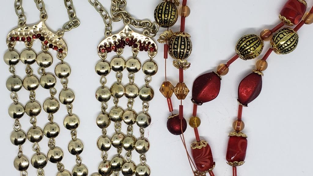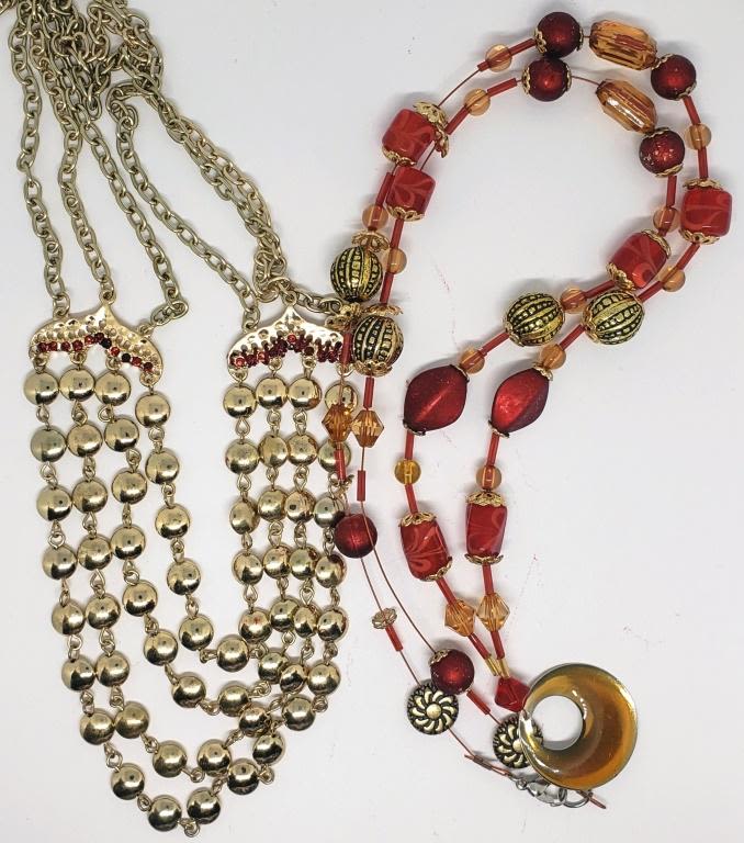 2 VINTAGE RED AND GOLD-TONED NECKLACES!