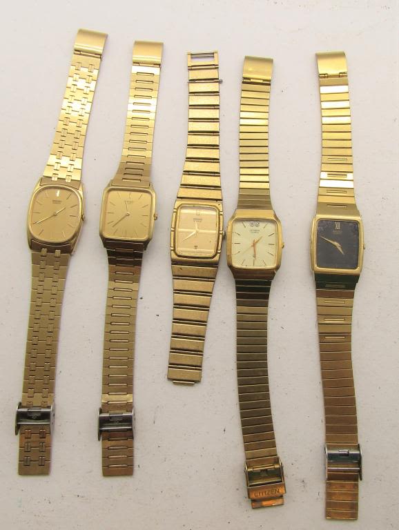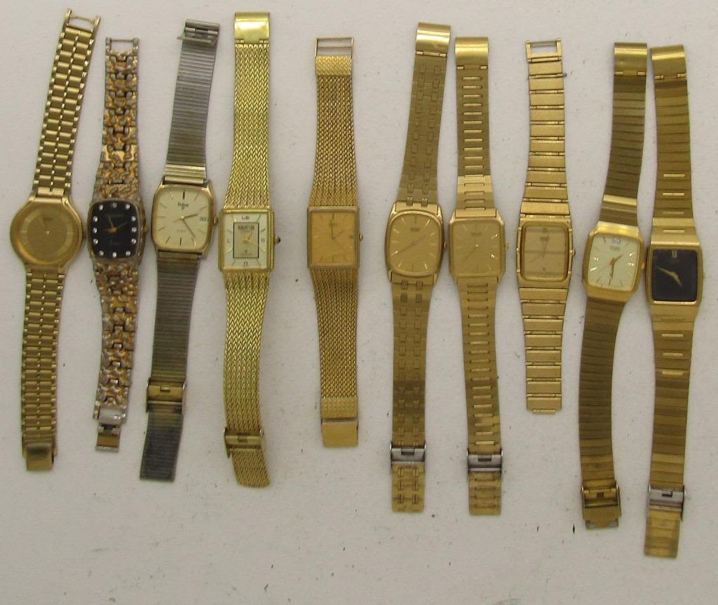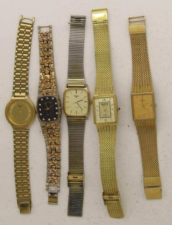 NOT TESTED AS TO WORKING OR NOT-SOME FOR PARTS OR REPAIRS-SOME MAY WORK–MOST WILL NEED BATTERY REPLACEMENT-PULSAR-CITIZEN-(6)SEIKO-LINDENWOL D-MANHATTAN-