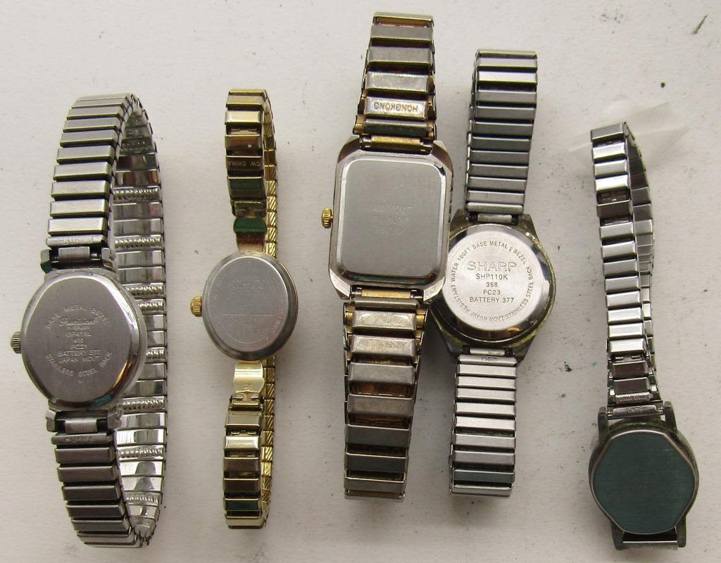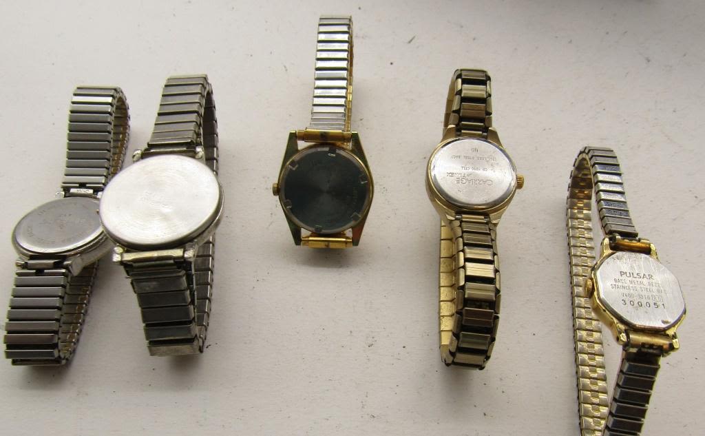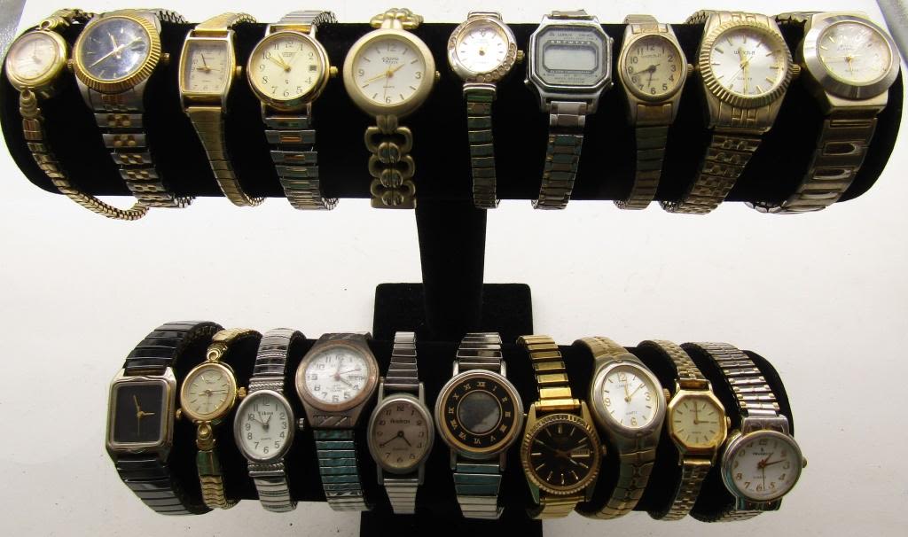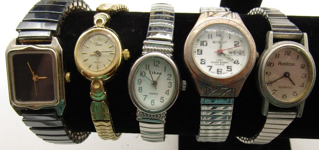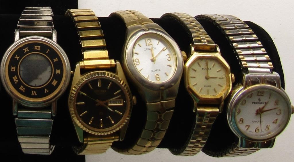 NOT TESTED AS TO WORKING OR NOT-SOME FOR PARTS OR REPAIRS-SOME MAY WORK–MOST WILL NEED BATTERY REPLACEMENT-BOCO CLASSICS-SEIKO-(2)TIMEX-CARRIAGE-EIKON-SHARP- (2)WATCH