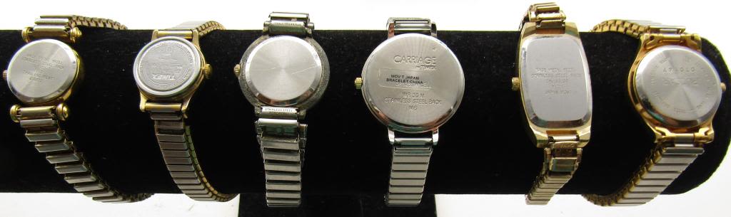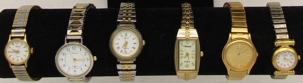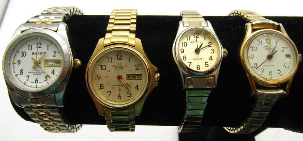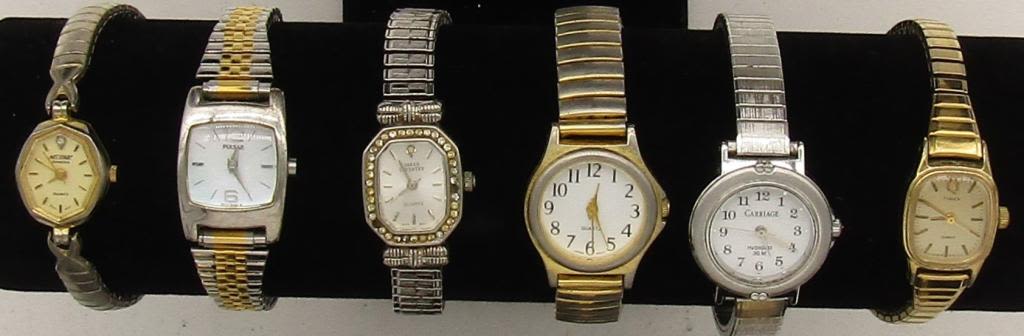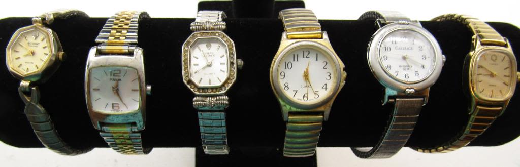NOT TESTED AS TO WORKING OR NOT-SOME FOR PARTS OR REPAIRS-SOME MAY WORK–MOST WILL NEED BATTERY REPLACEMENT-SARAH COVENTRY-PULSAR-(2)ANNE KLEIN-(2)CARRIAGE-ARMITRON-CHATEAU-SHARP-(2)T