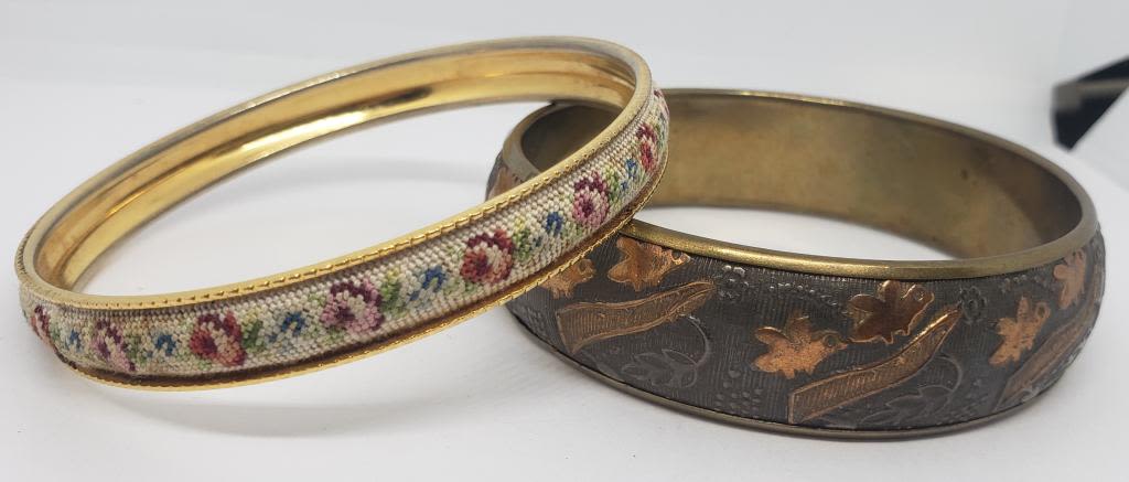 INDIA WITH LEAF ENGRAVED DESIGN PLUS (1)GOLD TONED WITH CROSS STITCH FLOWER DESIGN