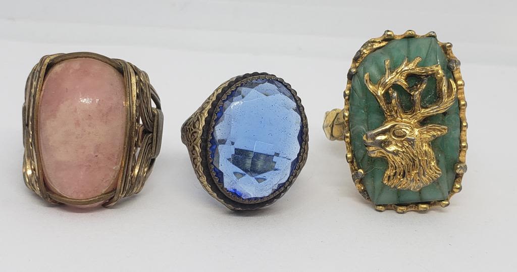 RHINESTONE (1)DEER AND POSSIBLE CARVED JADE BACKGROUND (1)WITH PINK MARBLE CENTER STONE-VARIOUS SIZES