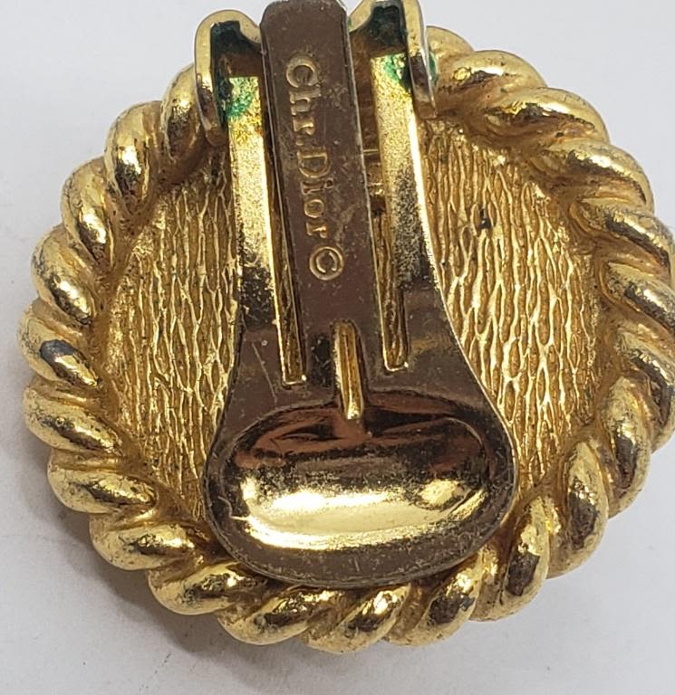 (1)MARKED CHR DIOR-RHINESTONES-METALLIC CRÈME LUCITE CENTER