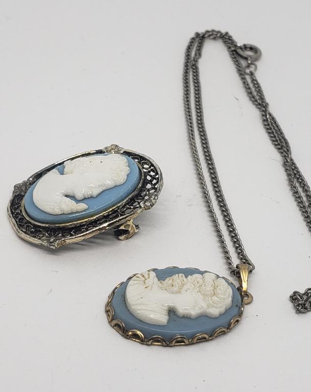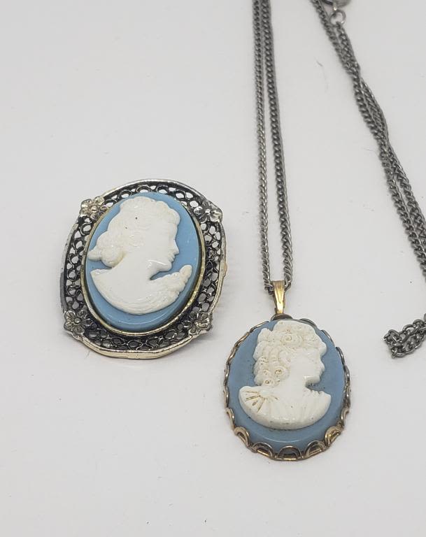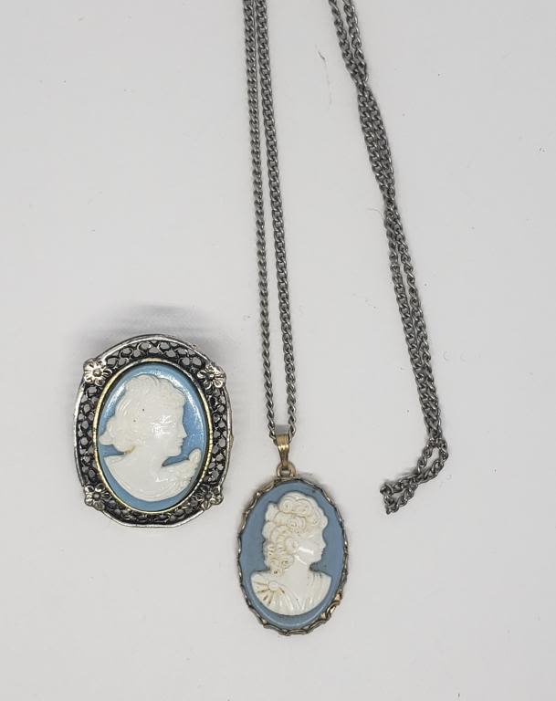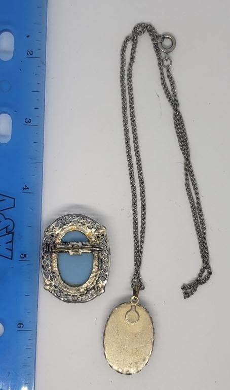 (1)NECKALCE (1)BROOCH-BOTH HAVE BABY BLUE BACKGROUND