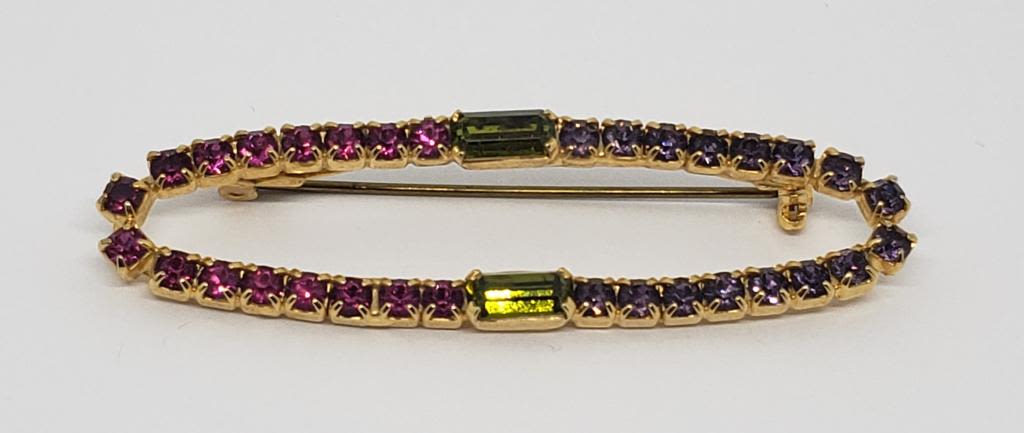 BROOCH-GREEN-PURPLE-MAGENTA RHINESTONES