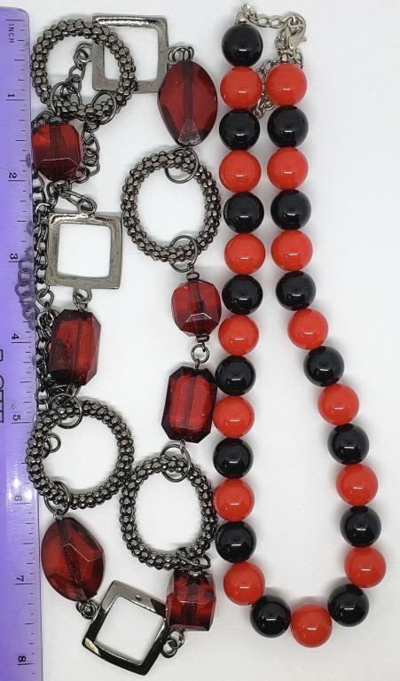 2 RED AND BLACK FASHION NECKLACES