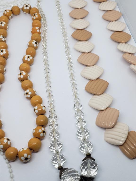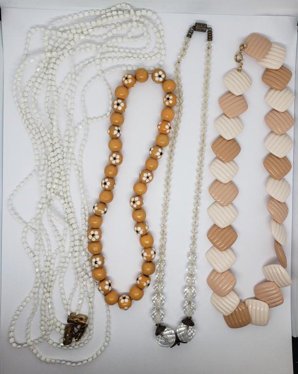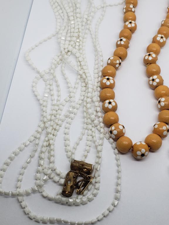 (1)WOOEN FLOWER (1)CLEAR BEADED (1)WHITE BEADED