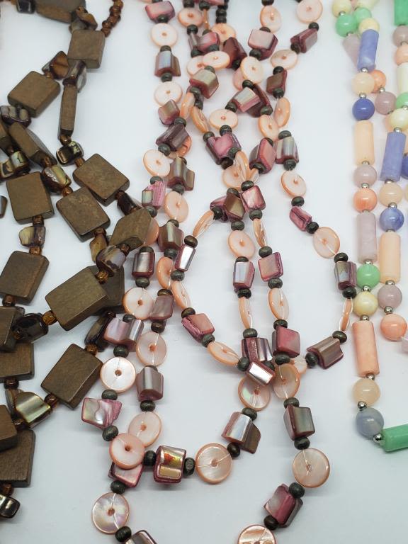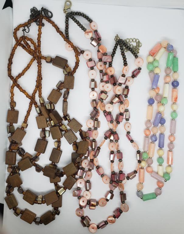 BEADED (1)WOODEN BEADS (1)PINK POSSIBLE CARVED SHELL?