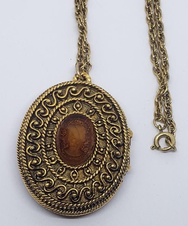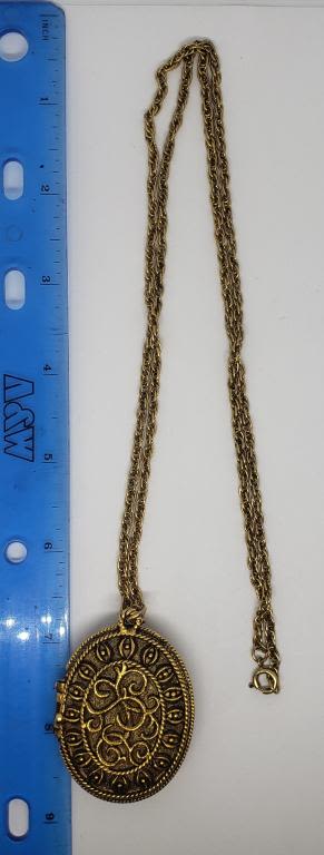 PERFUME LOCKET PENDANT WITH GOLD TONED LINKED CHAIN