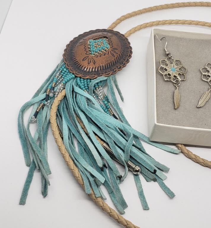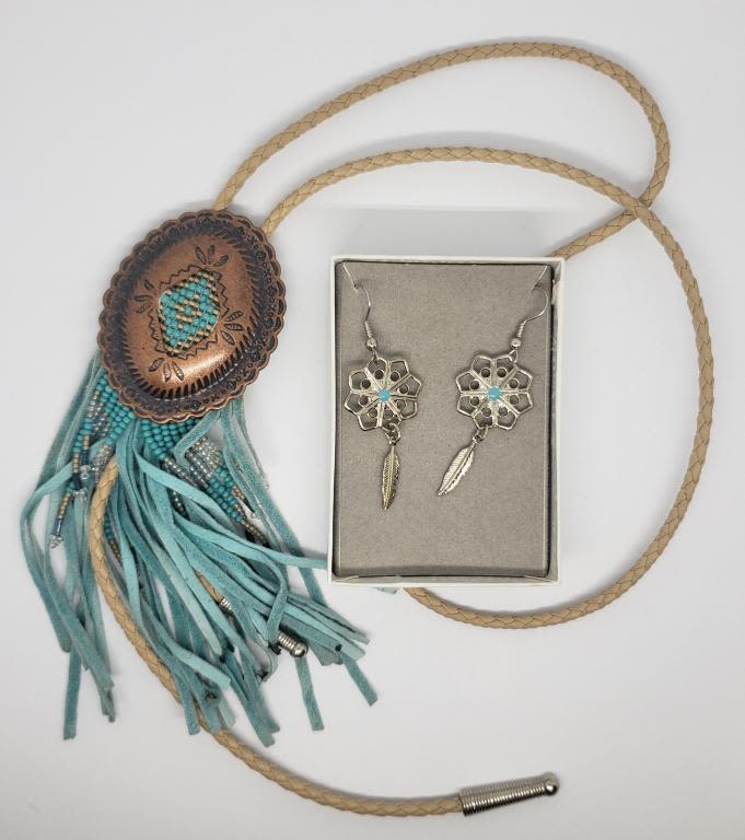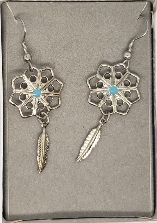 PENDANT PLUS (1)PAIR OF PIERCED DANGLY EARRING WITH PAINTED TURQUOISE CENTER