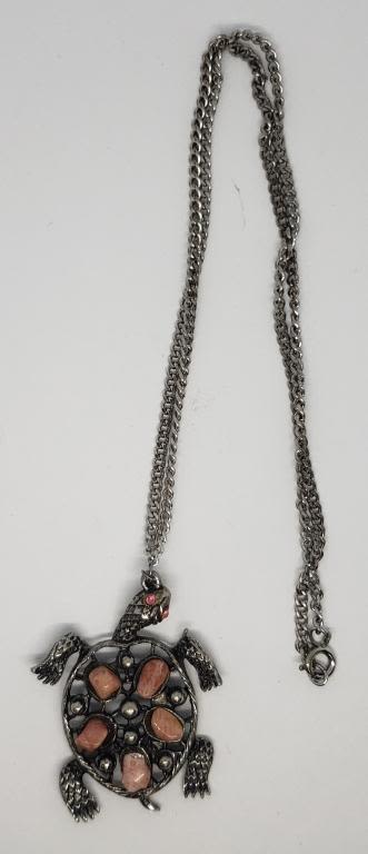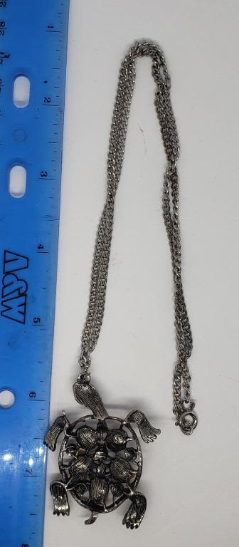 VINTAGE SILVER TONED TURTLE PENDANT WITH