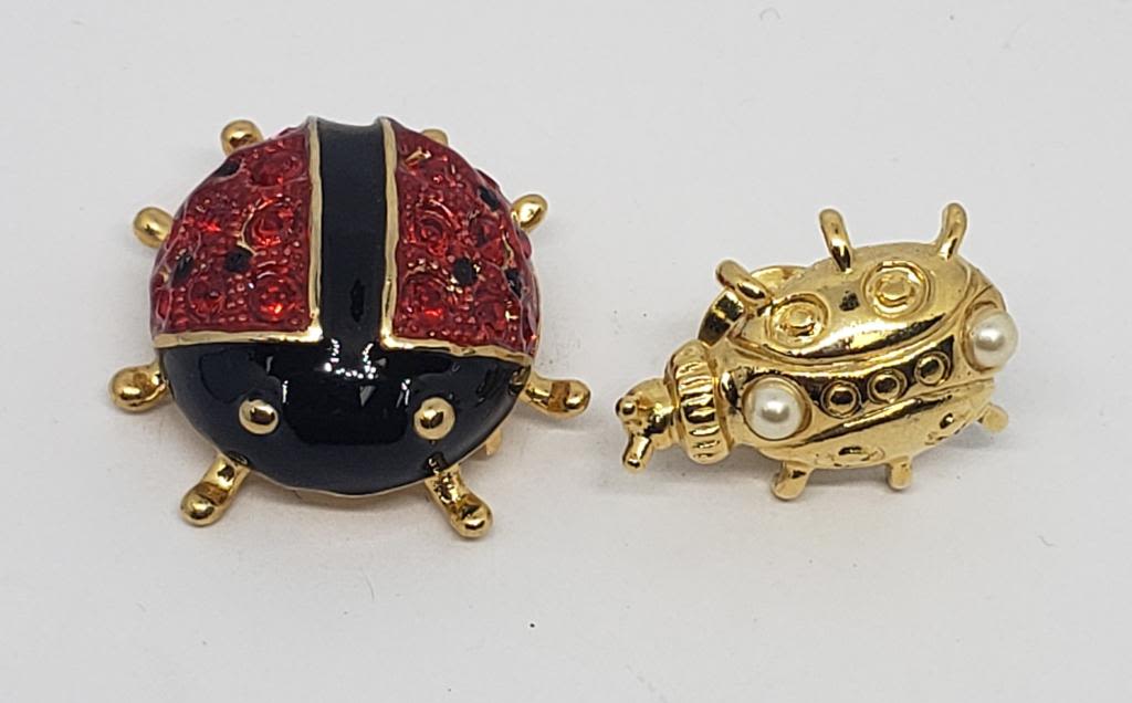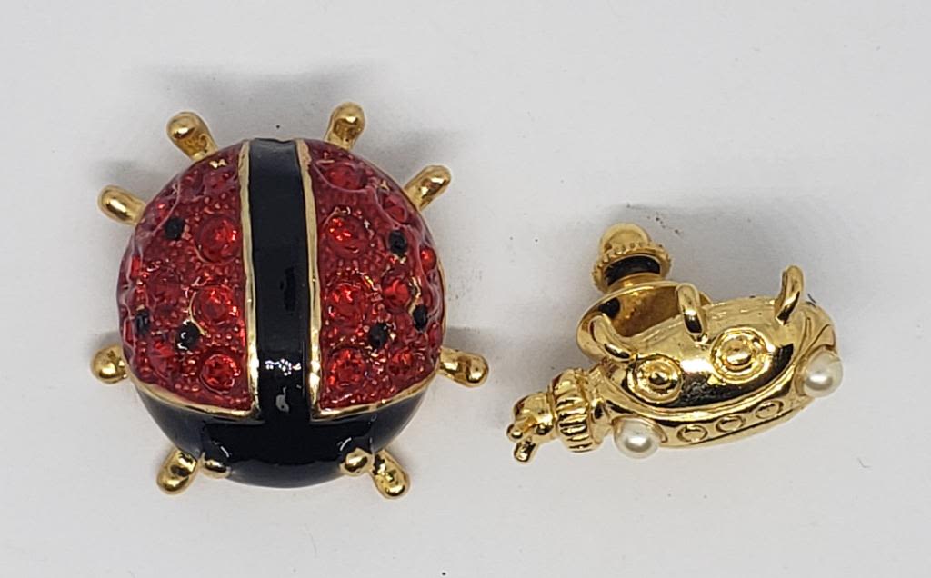 RHINESTONES AND BLACK ENAMEL (1)WITH FAUX PEARL
