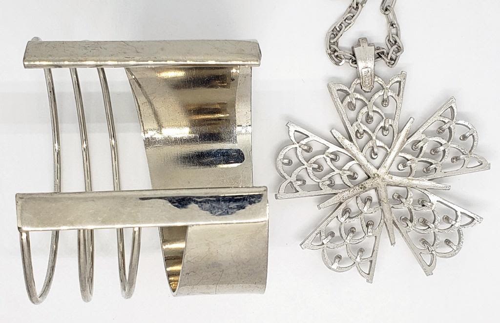 CUFF BRACELET AND STAR SHAPED STATEMENT NECKLACE MARKED TRIFARI!
